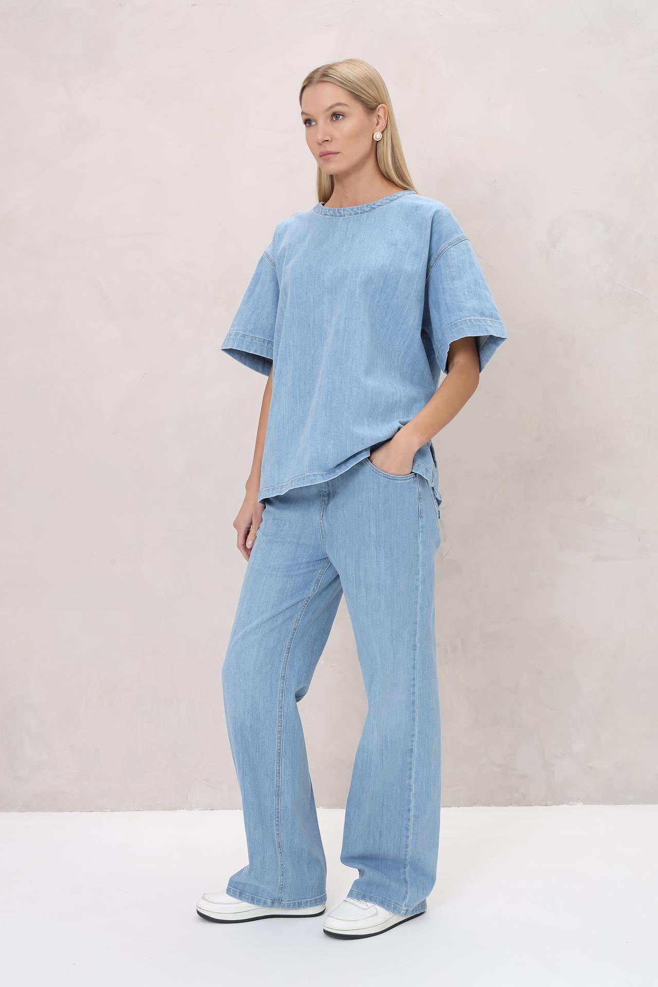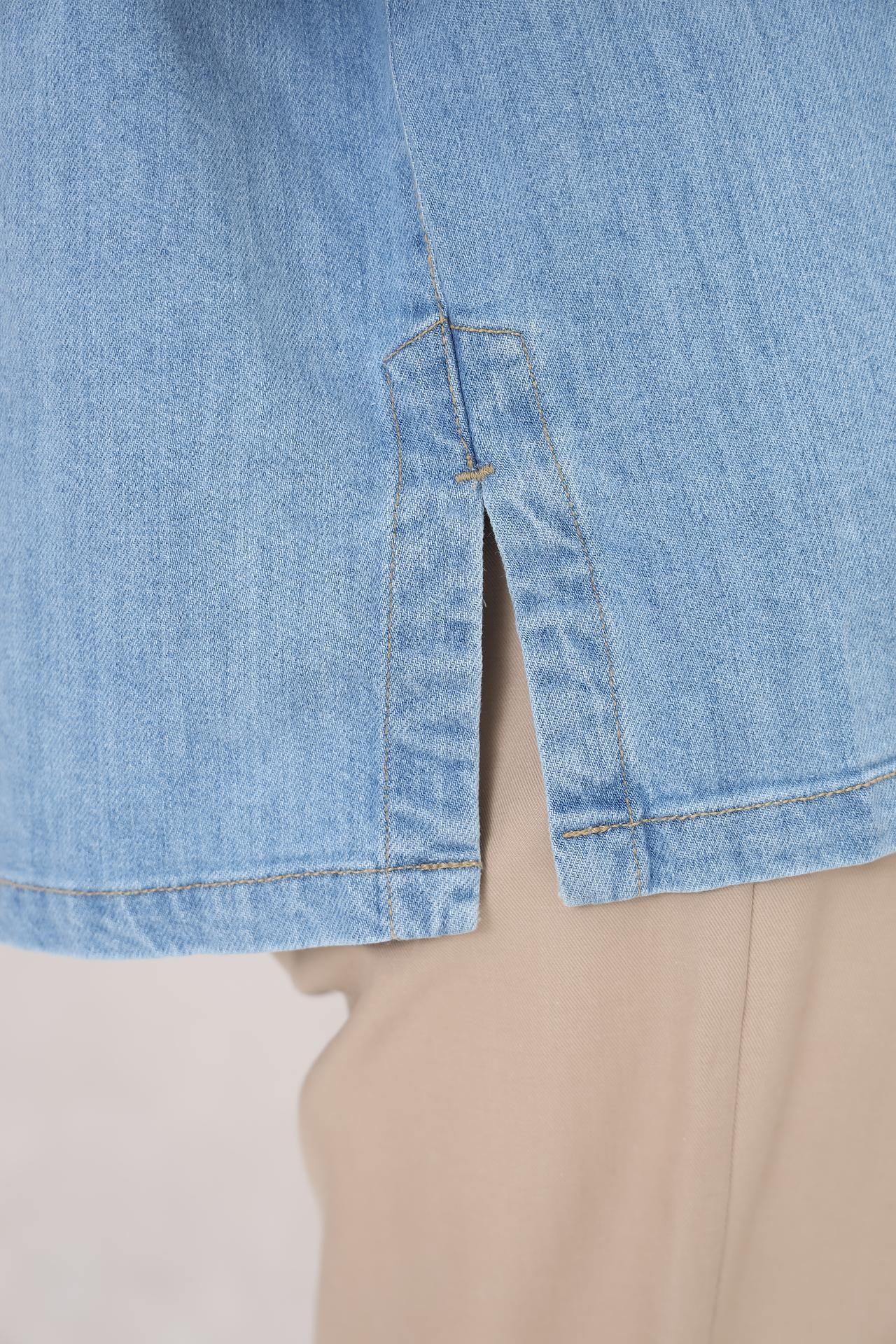 - Стильный дизайн. Джинсовая ткань и минималистичный дизайн делают эту блузу модной и актуальной.