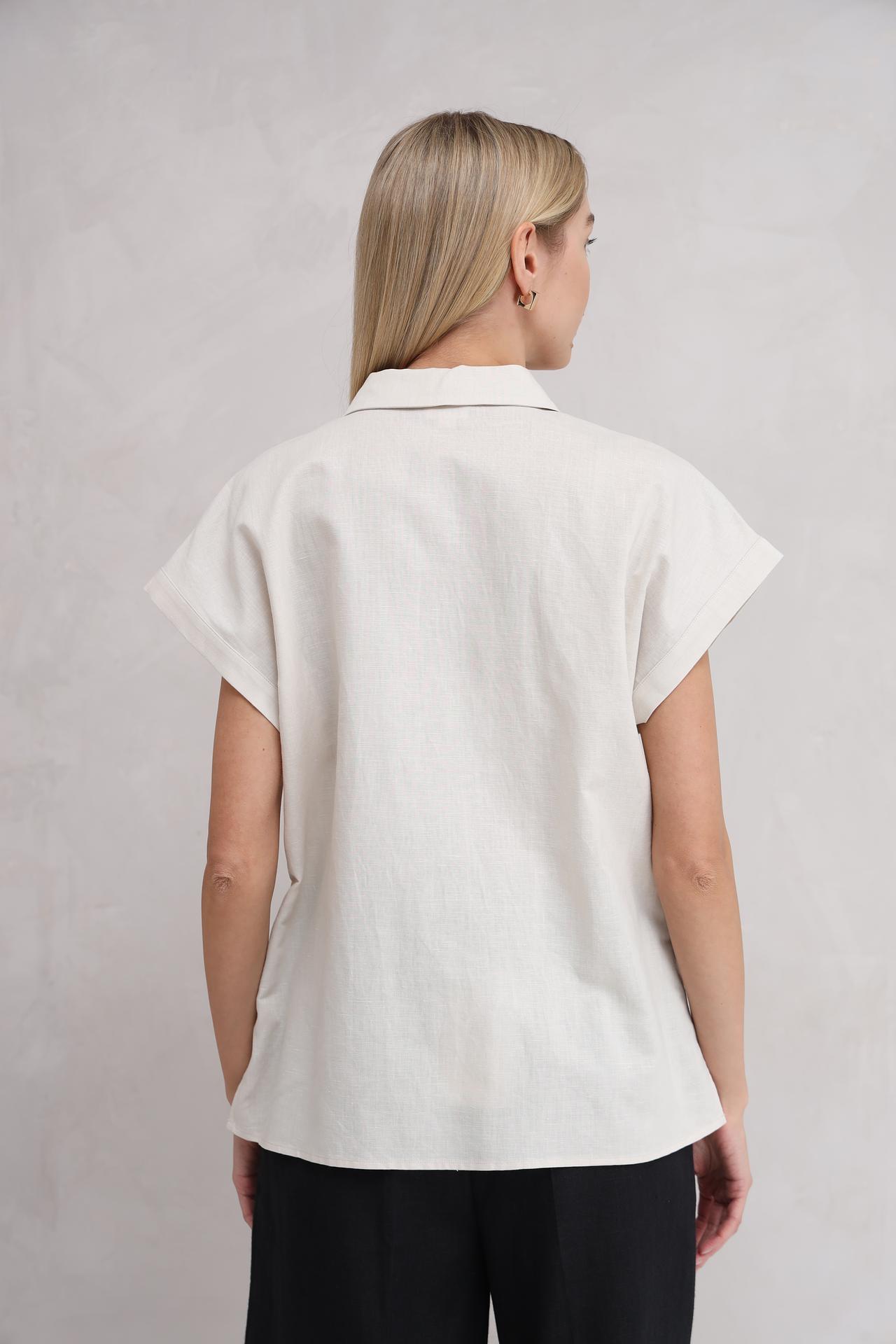 Стильная блуза UNQ из натуральной ткани – идеальный выбор для теплого времени года. Сочетание хлопка и льна обеспечивает комфорт и воздухопроницаемость. Модель выполнена в лаконичном дизайне, который подходит под любой стиль.