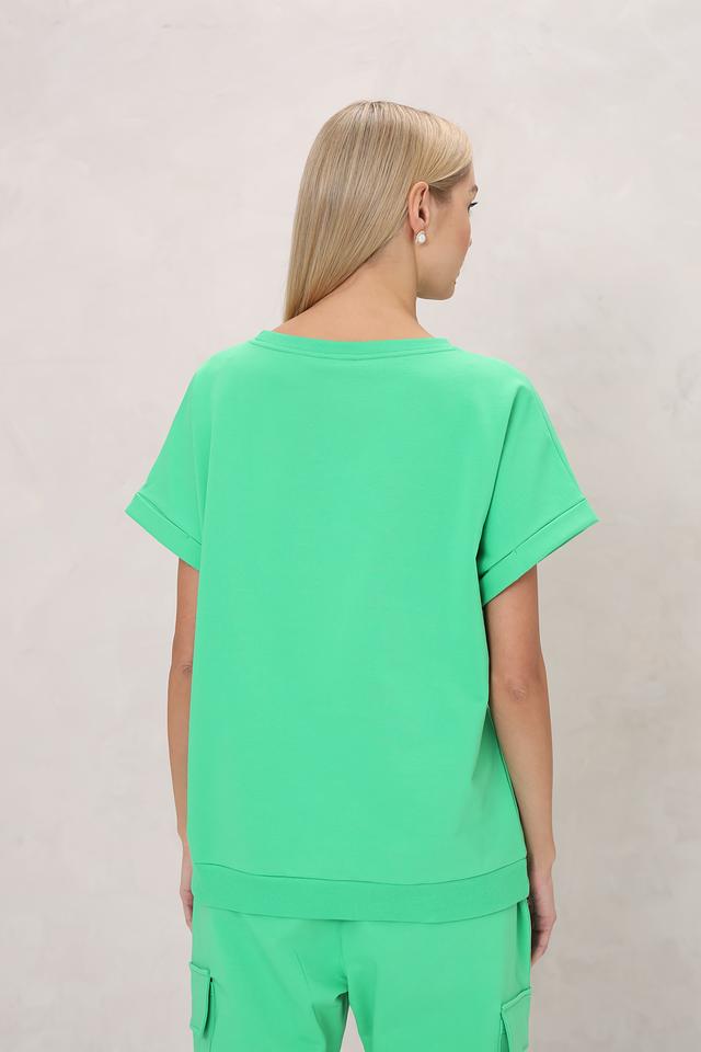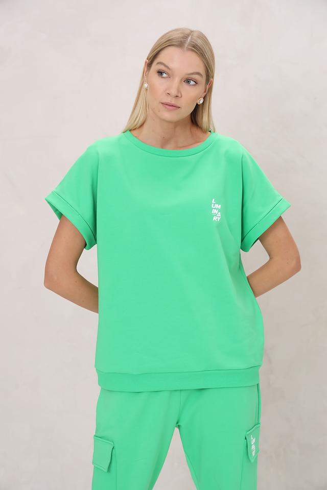 Женский пуловер UNQ лаймового цвета – это стильная и удобная модель с коротким рукавом и оригинальным логотипом. Изготовлен из мягкого хлопка с добавлением эластана для комфортной посадки и свободы движений. Состав: хлопок 95%, эластан 5%