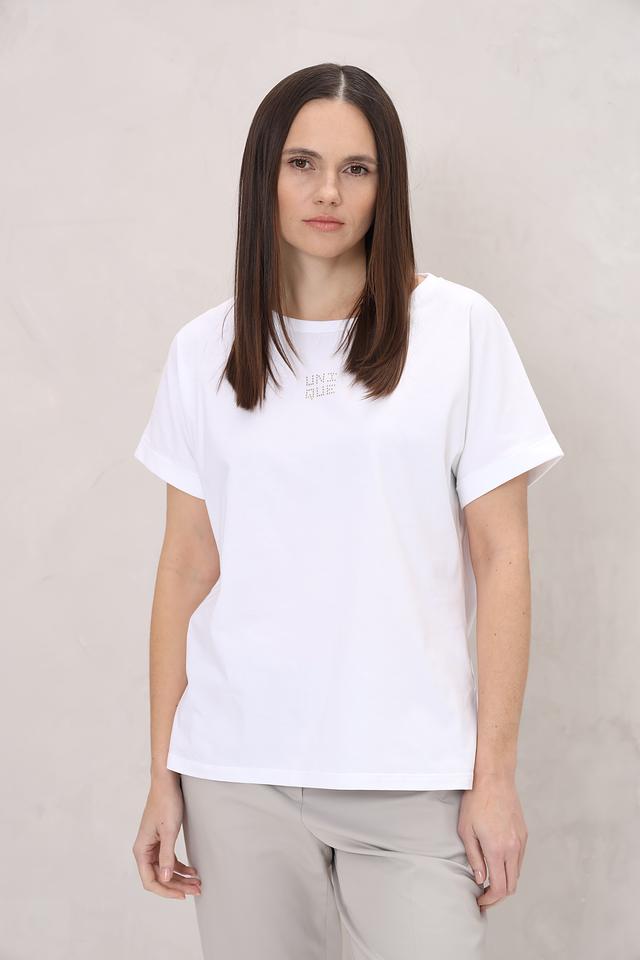 Эта белая футболка от UNQ станет незаменимой базой для вашего повседневного образа. Изготовленная из 100% хлопка, она обеспечивает комфорт и воздухопроницаемость в течение всего дня.