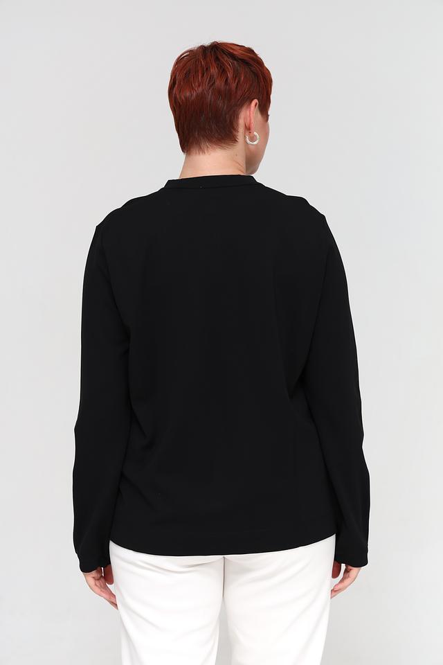 Черная блуза от UNQ с длинными рукавами и удобной молнией. Изготовлена из мягкой и приятной к телу вискозы с добавлением полиамида и эластана для комфорта и лучшей посадки. Состав: вискоза 65%, полиамид 30%, эластан 5%