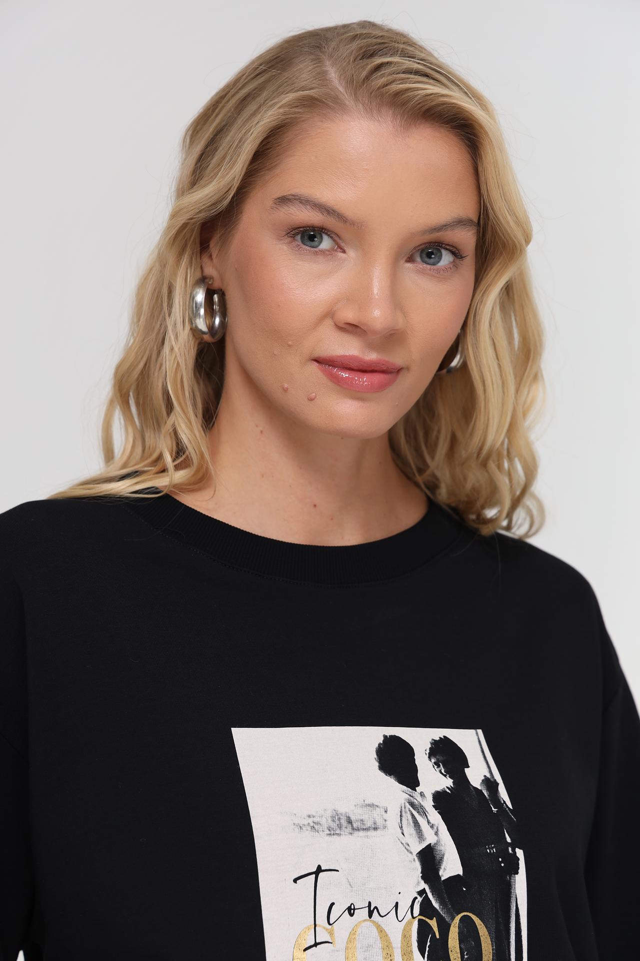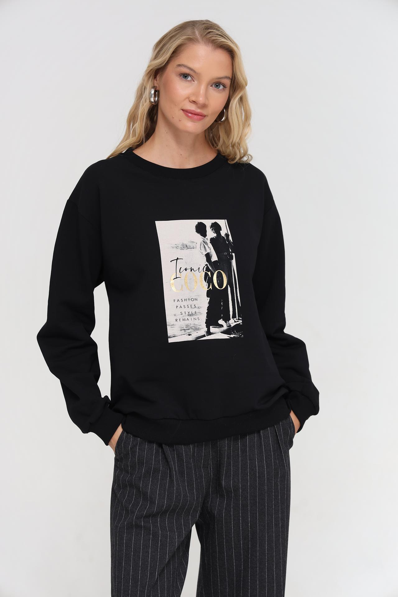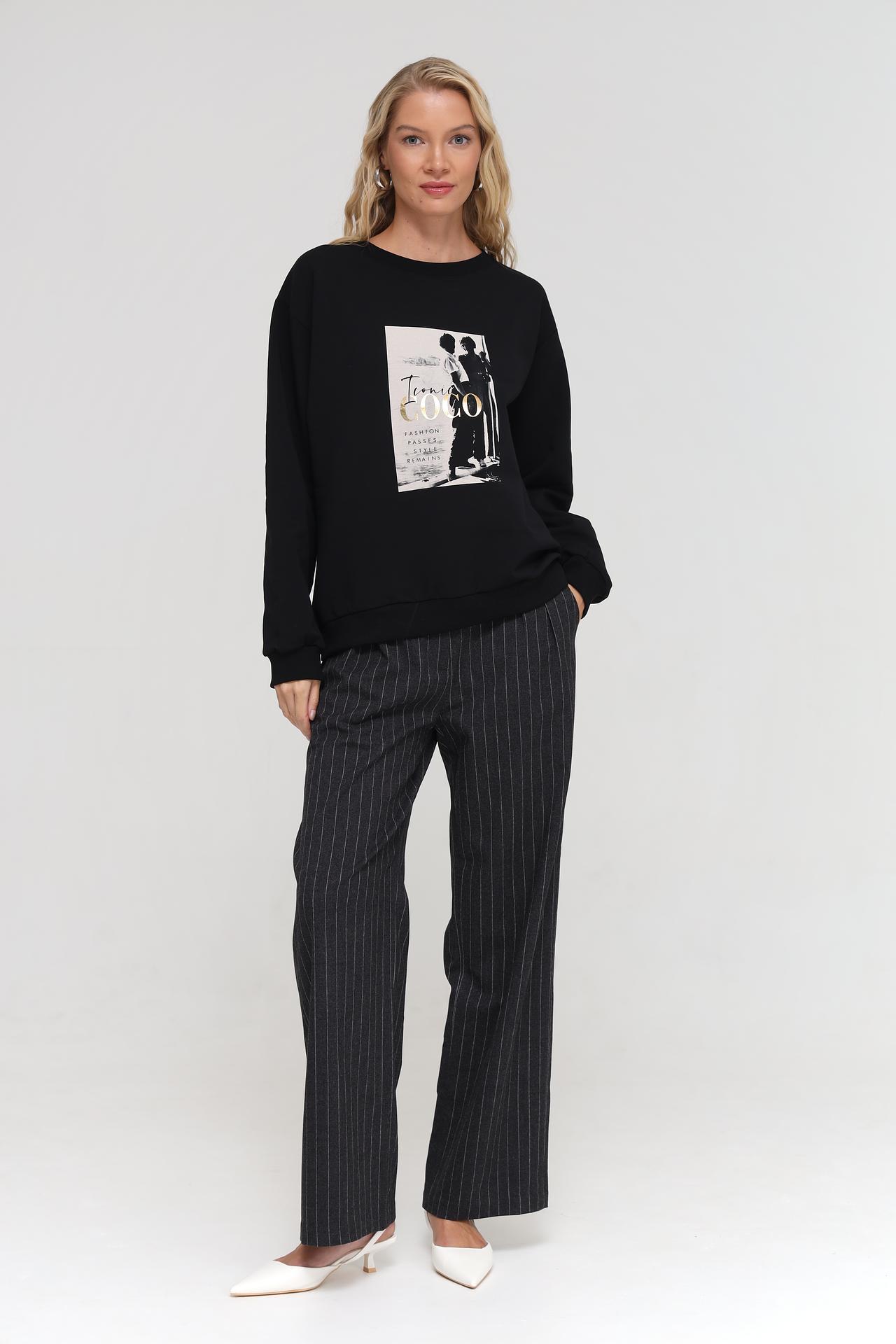 Элегантный пуловер UNQ – идеальный выбор для создания стильных и комфортных образов. Модель выполнена в классическом чёрном цвете и украшена оригинальным принтом, который добавляет изюминку. Пуловер станет незаменимой вещью в вашем гардеробе, сочетая в себе модный дизайн и высокое качество.