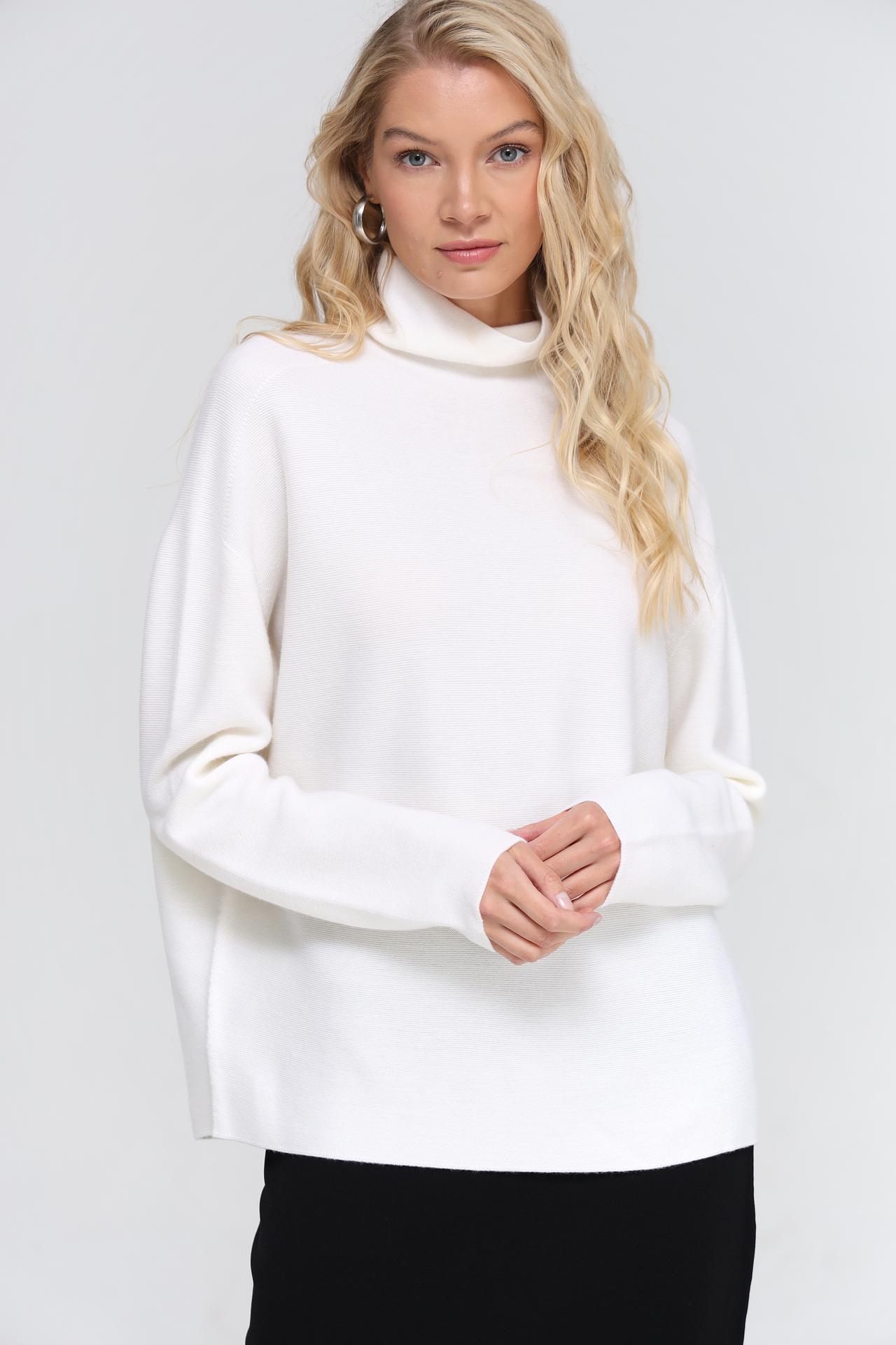 Стильный женский пуловер UNQ из 100% овечьей шерсти. Модель выполнена в элегантном белом цвете, идеально подойдет для создания как повседневных, так и нарядных образов. Прямой силуэт, высокий ворот-стойка.