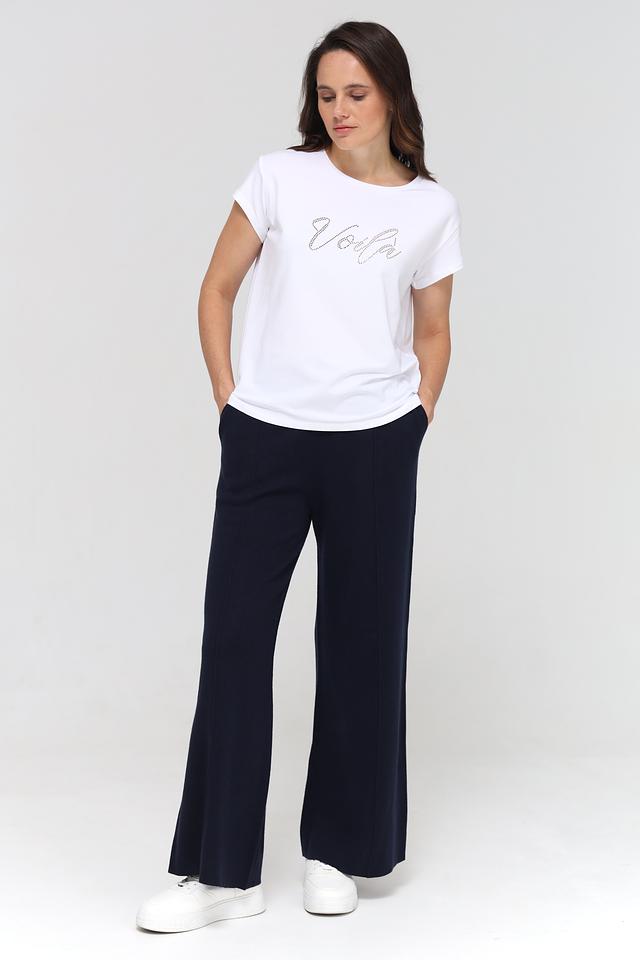 Брюки имеют прямой крой и широкие штанины, что создает эффект легкости и свободы движений. Высокая посадка подчеркивает талию и визуально удлиняет ноги. Ткань, состоящая из полиакрила и шерсти овечьей, приятна к телу и обеспечивает комфорт в течение всего дня.