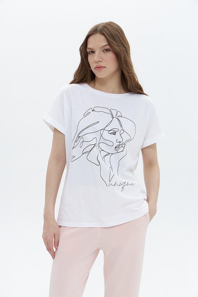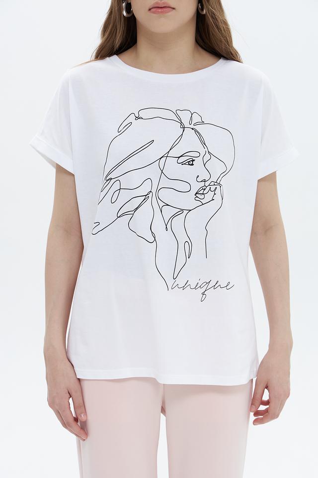 Белая футболка UNQ с оригинальным принтом в виде графичного изображения лица. Изготовлена из 100% хлопка, обеспечивающего комфорт в носке. Стильный и лаконичный дизайн делает эту футболку отличным выбором для повседневного образа. Состав: хлопок 100%