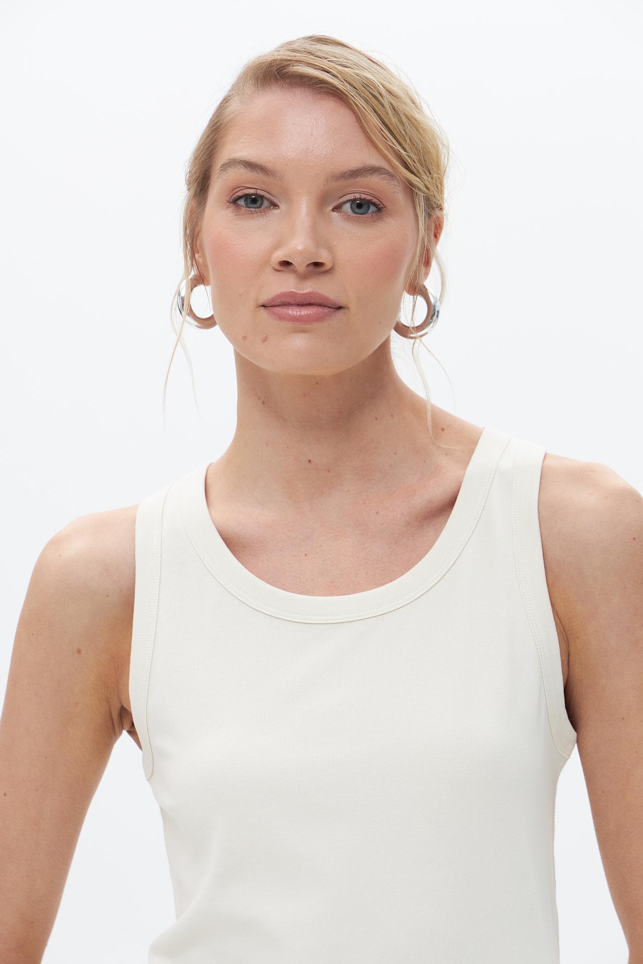 Этот базовый топ от UNQ – идеальное дополнение к вашему гардеробу. Благодаря классическому дизайну и нейтральному молочному оттенку, он легко сочетается с различными элементами одежды, от повседневных джинсов до элегантных юбок и жакетов. Топ изготовлен из смесовой ткани (35% полиэстер, 65% хлопок), что обеспечивает комфорт и долговечность.