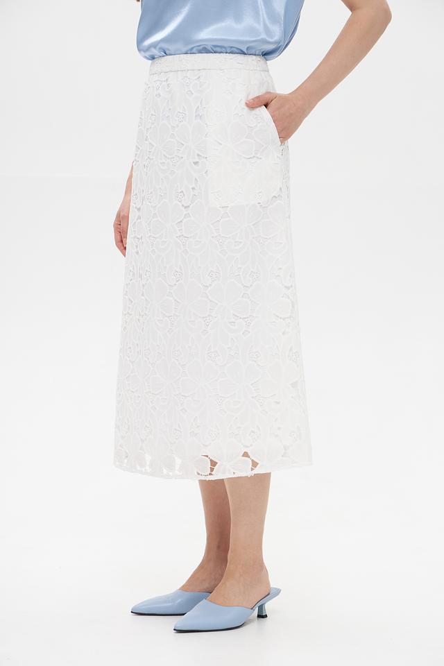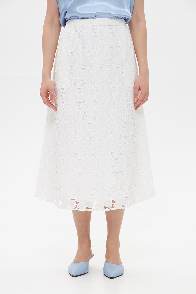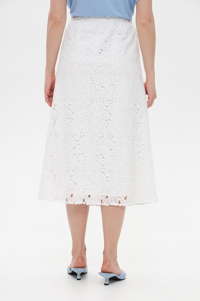 Юбка UNQ белого цвета с изысканным цветочным кружевом. Изготовлена из 100% полиэстера, обеспечивающего лёгкость и комфорт. Идеальный выбор для создания женственного и элегантного образа. Состав: полиэстер 100%