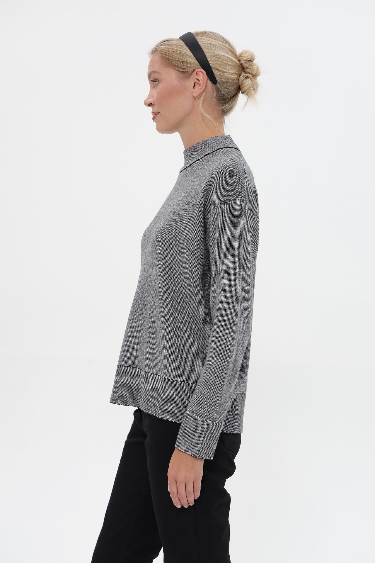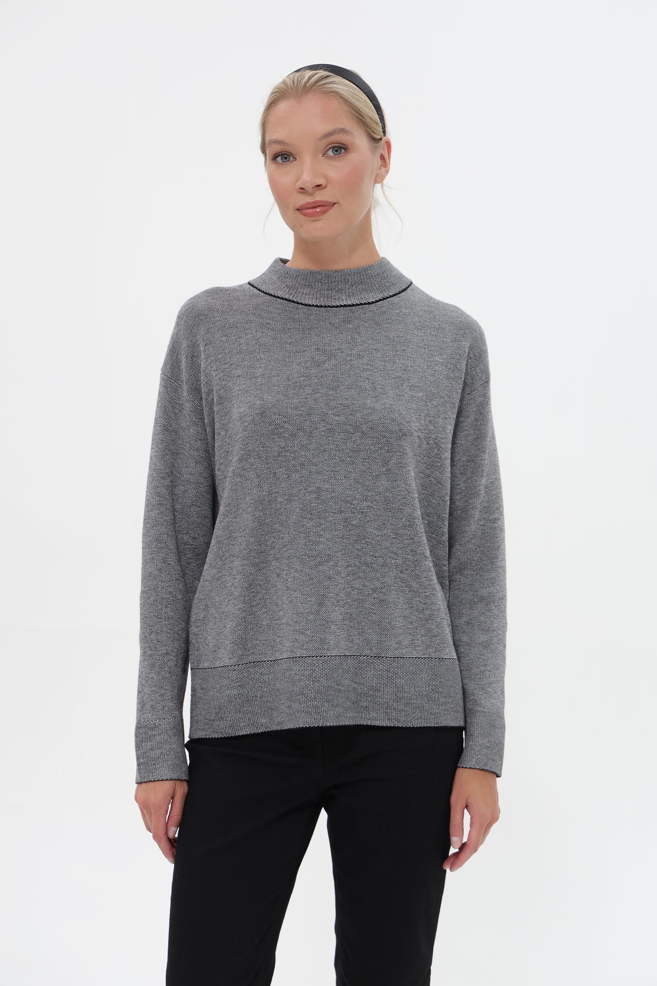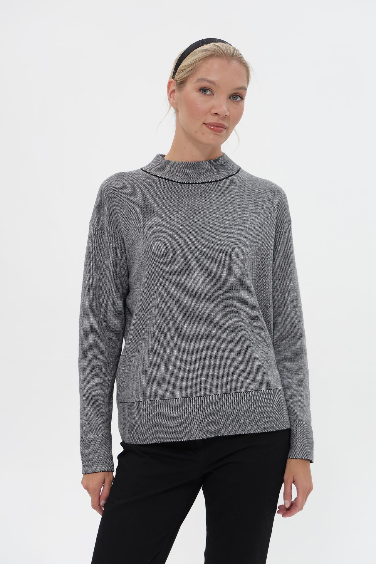 Пуловер UNQ женский серый с контрастной отстрочкой