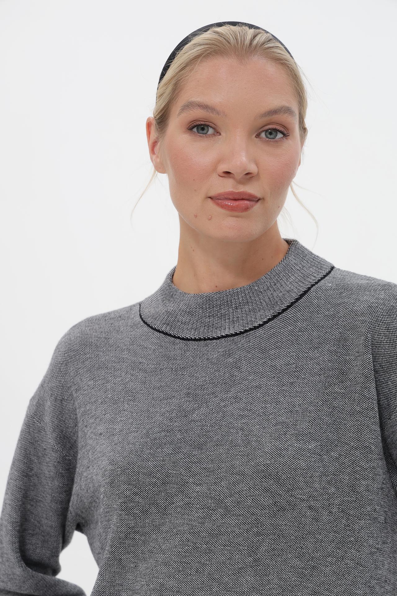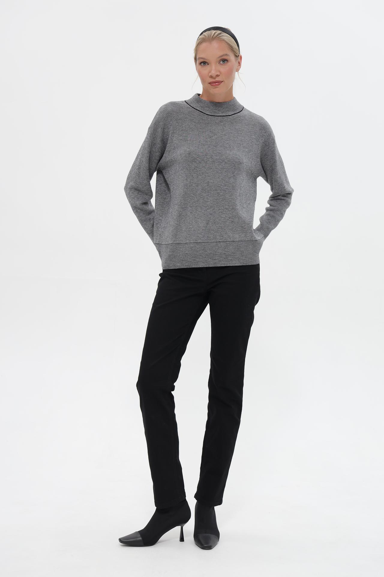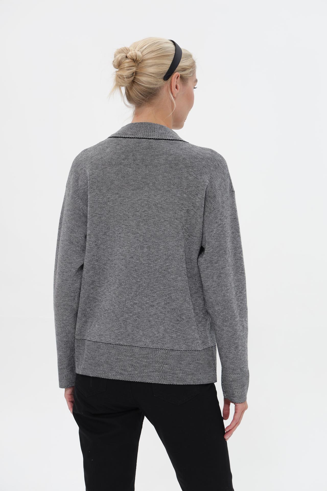 Пуловер UNQ женский серый с контрастной отстрочкой