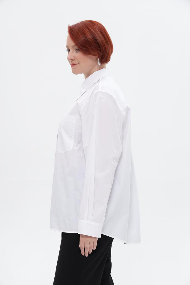 Рубашка имеет свободный крой, который не сковывает движений и позволяет создавать разнообразные образы – от деловых до повседневных. Модель дополнена накладным карманом на груди и манжетами на пуговицах, что добавляет ей функциональности и стиля.