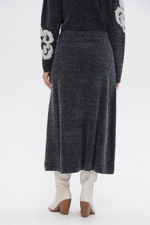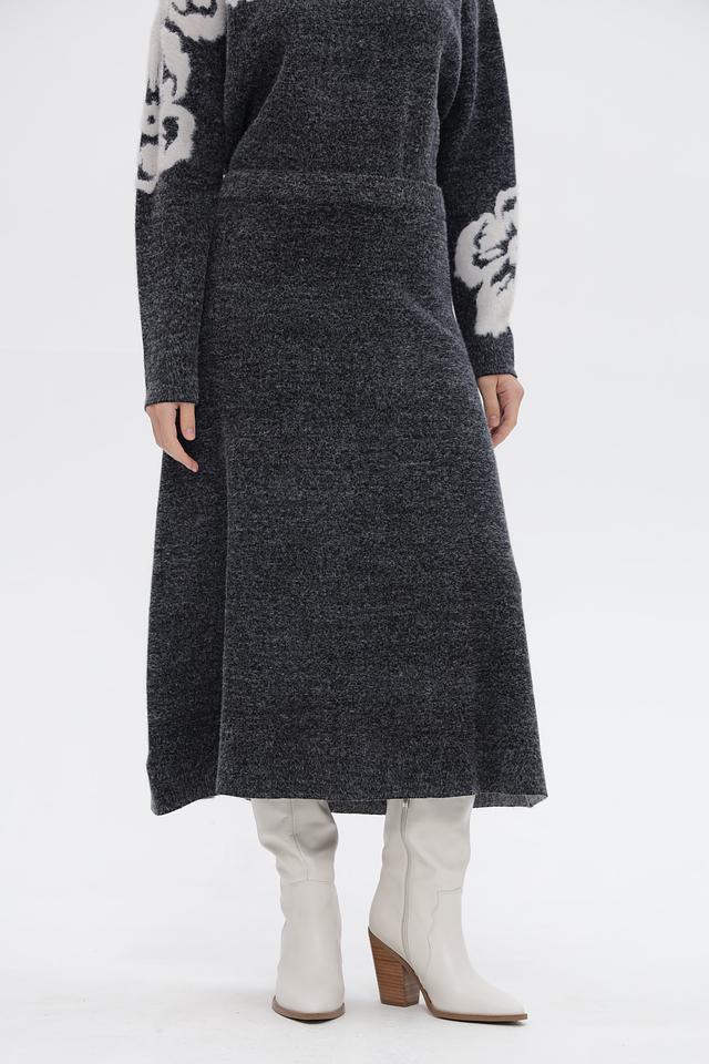 Представляем вязаную юбку от бренда UNQ. Модель выполнена в сером цвете с акцентным цветочным узором на рукавах. Юбка имеет длину миди и облегающий силуэт, подчеркивающий фигуру.