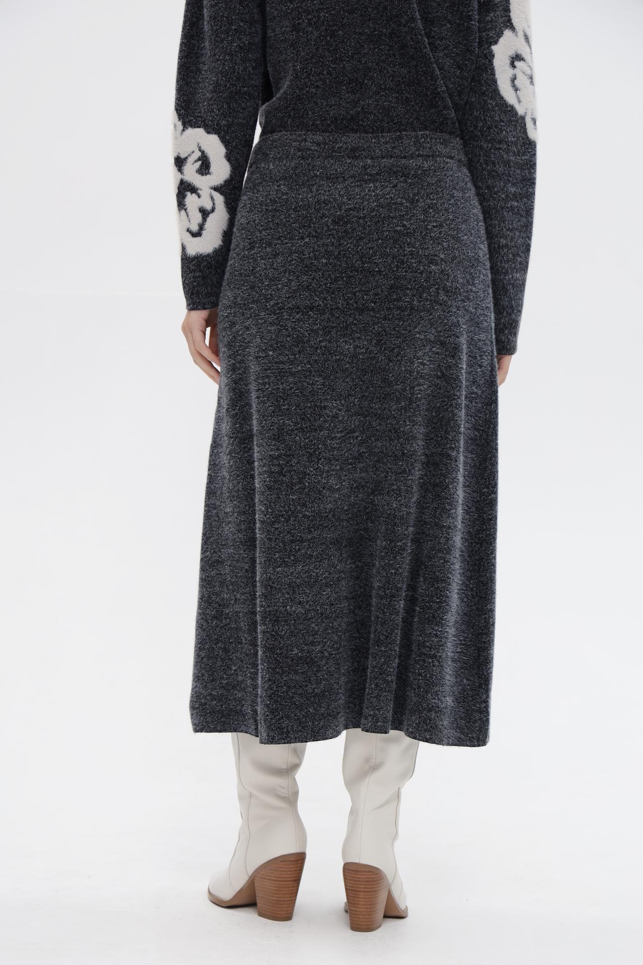- Дизайн: Лаконичный дизайн юбки дополнен эластичным поясом для идеальной посадки. Меланжевая текстура ткани придает изделию глубину и оригинальность.