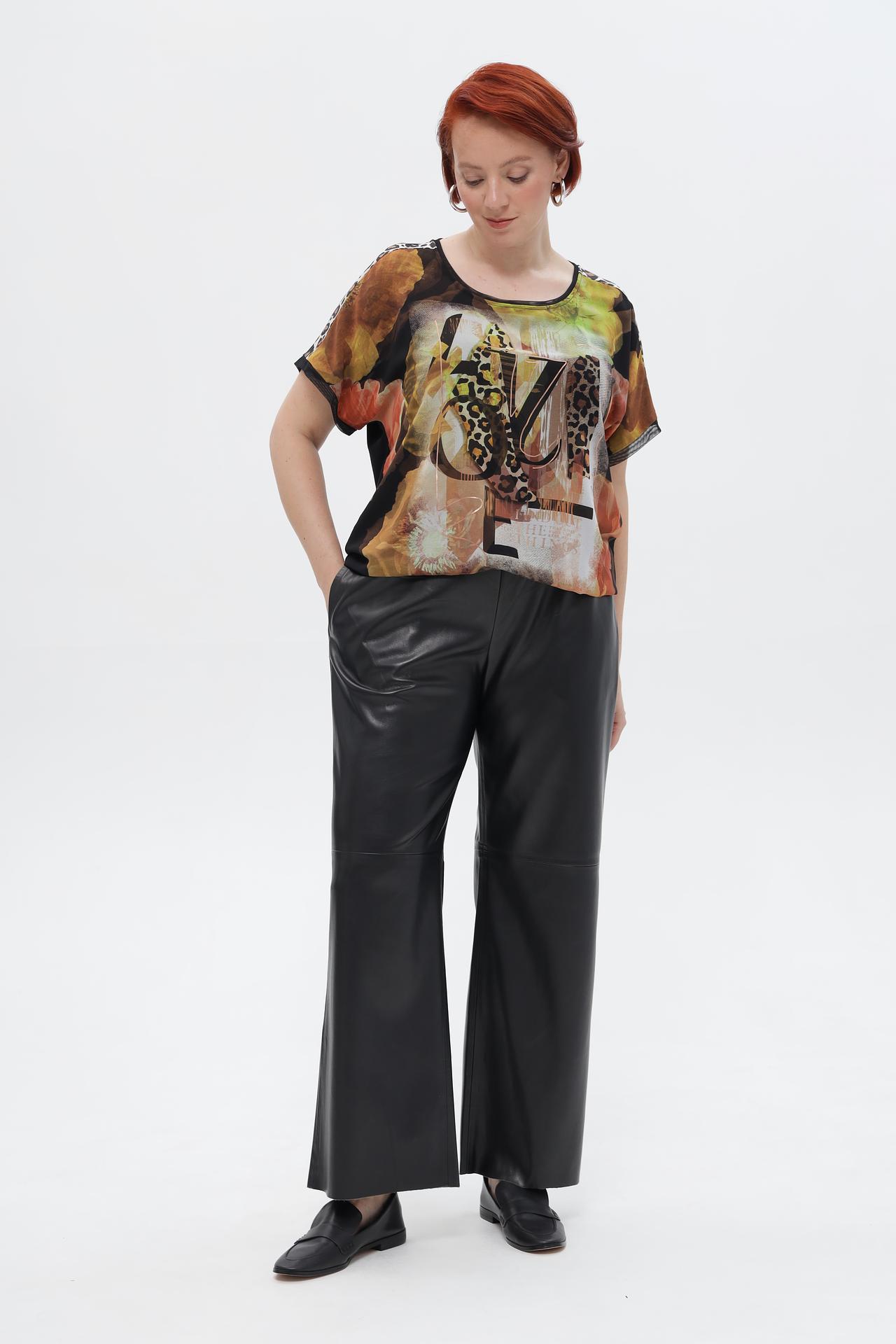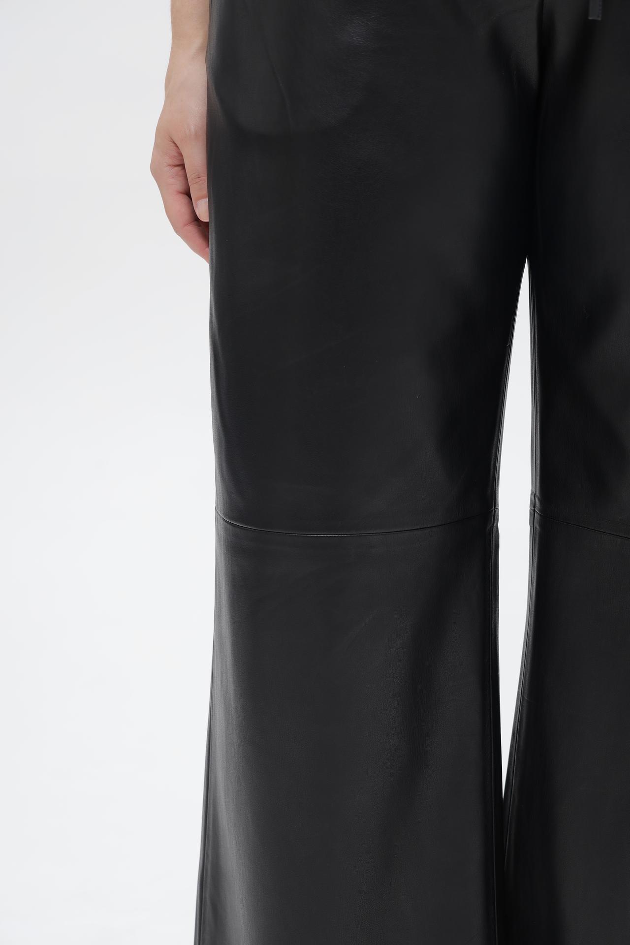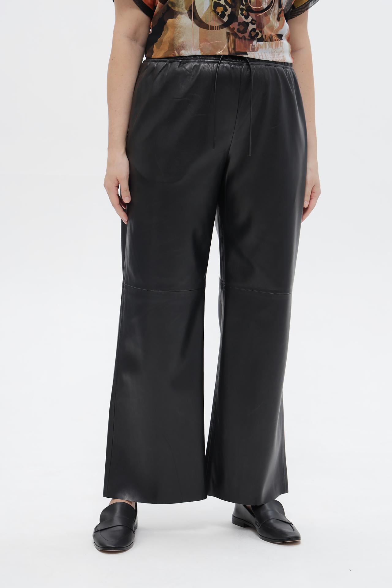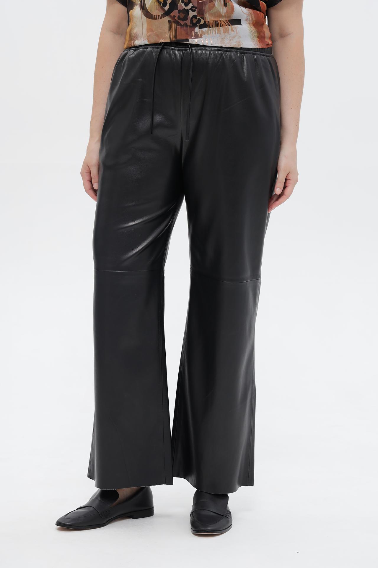 - Состав материала: Брюки изготовлены из 55% полиэстера и 45% полиуретана. Такое сочетание обеспечивает износостойкость, приятные тактильные ощущения и эффектный внешний вид, напоминающий натуральную кожу.