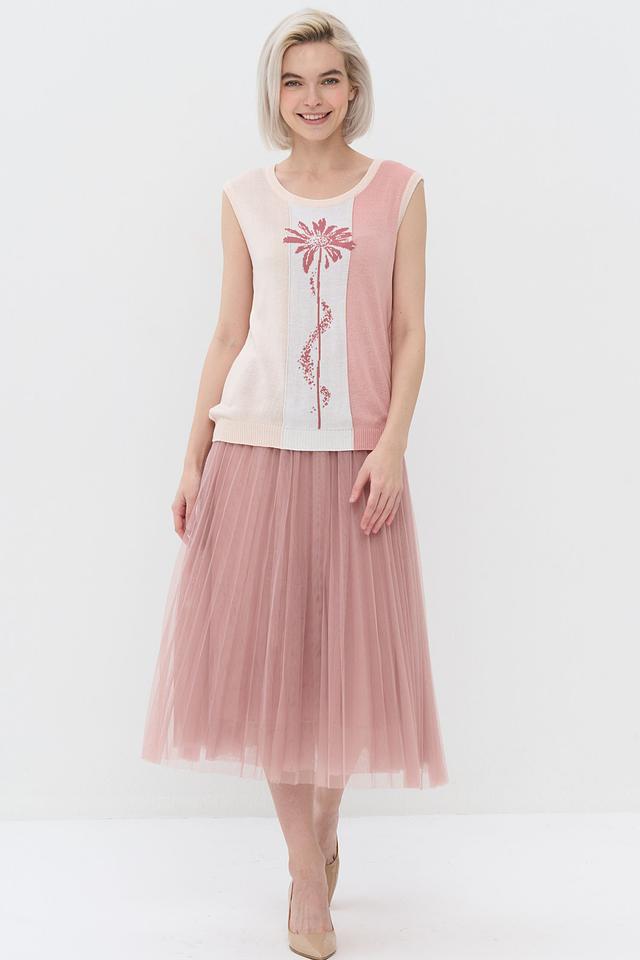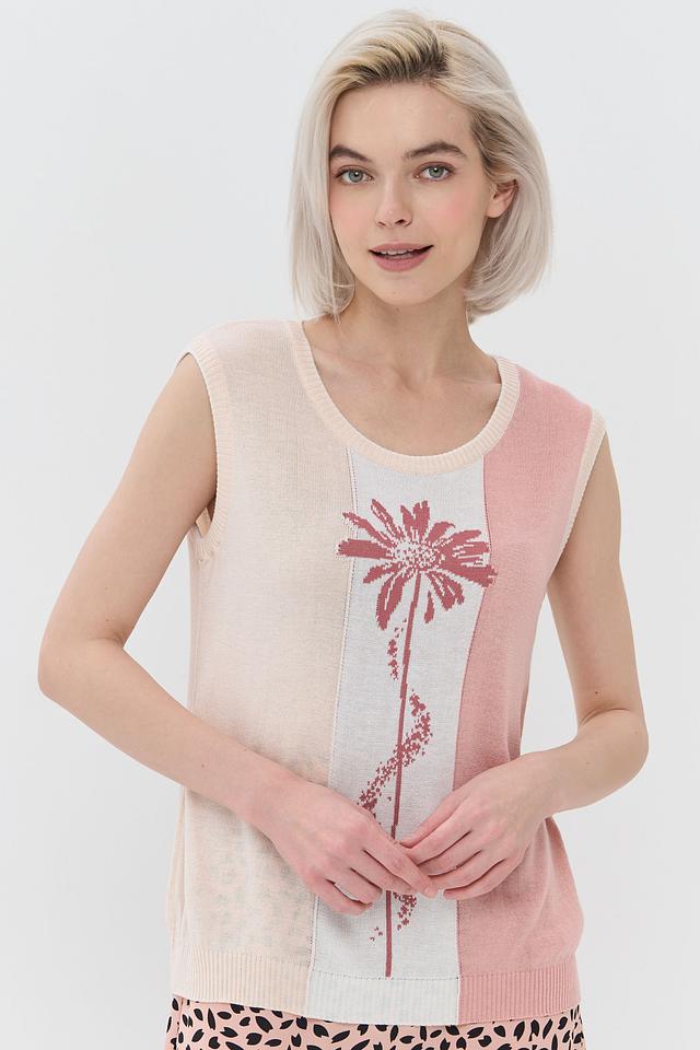 Женский жилет VAY бежевого и розового цвета украшен цветочным принтом. Модель выполнена из мягкого трикотажа, идеально подходит для создания лёгких и стильных образов. Состав: вискоза 50%, пан 50%