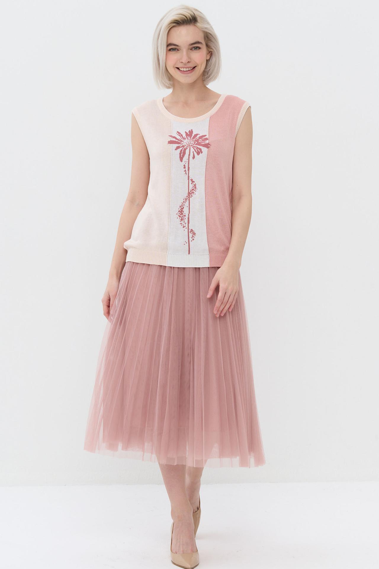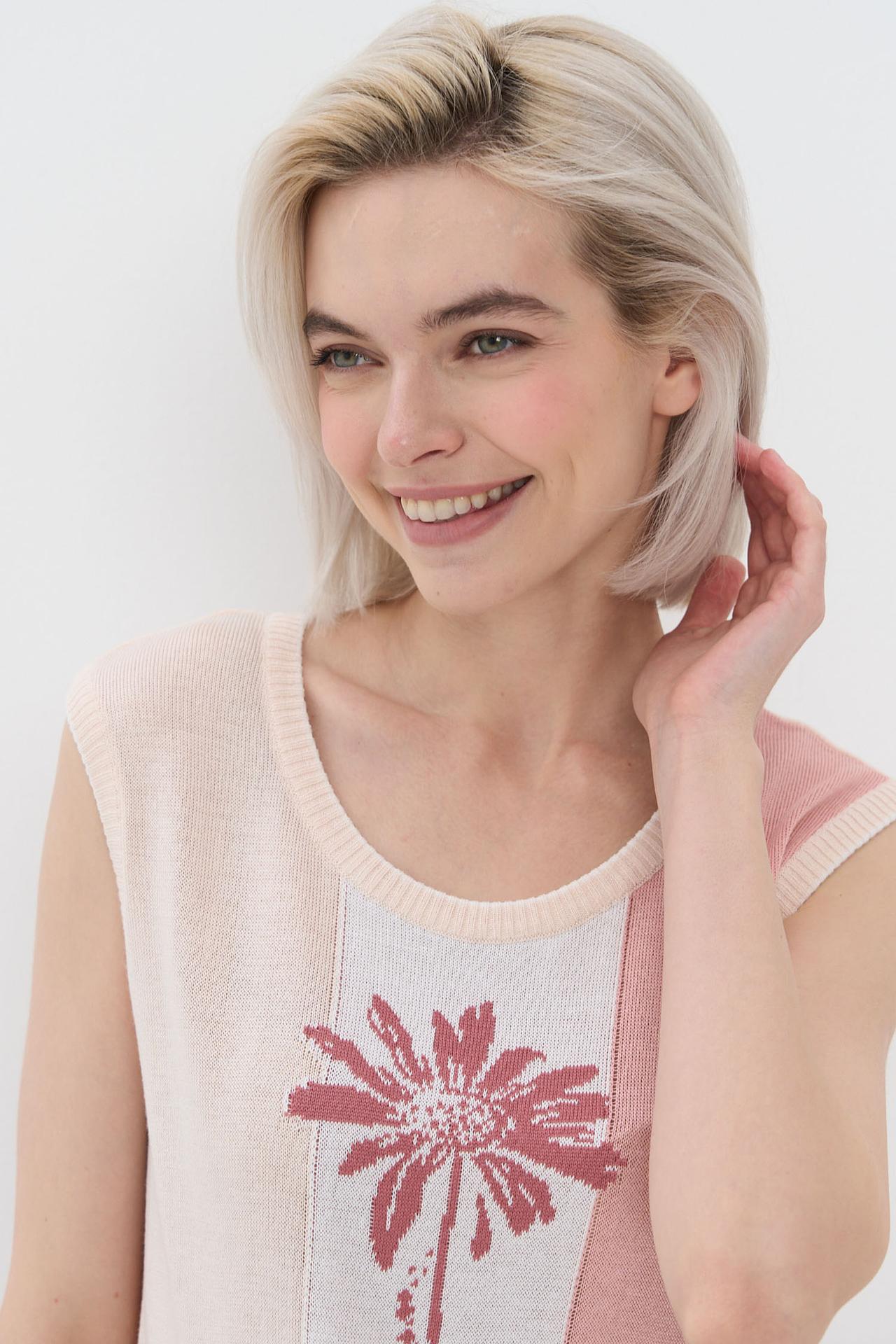 Элегантный вязаный жилет от VAY, выполненный из мягкого и приятного на ощупь материала (50% вискоза, 50% пан). Модель отличается удобным кроем и стильным дизайном в нежных розовых тонах, что делает ее идеальной для создания женственных и современных образов. Жилет украшен оригинальным принтом в виде цветка, добавляя образу изюминку.