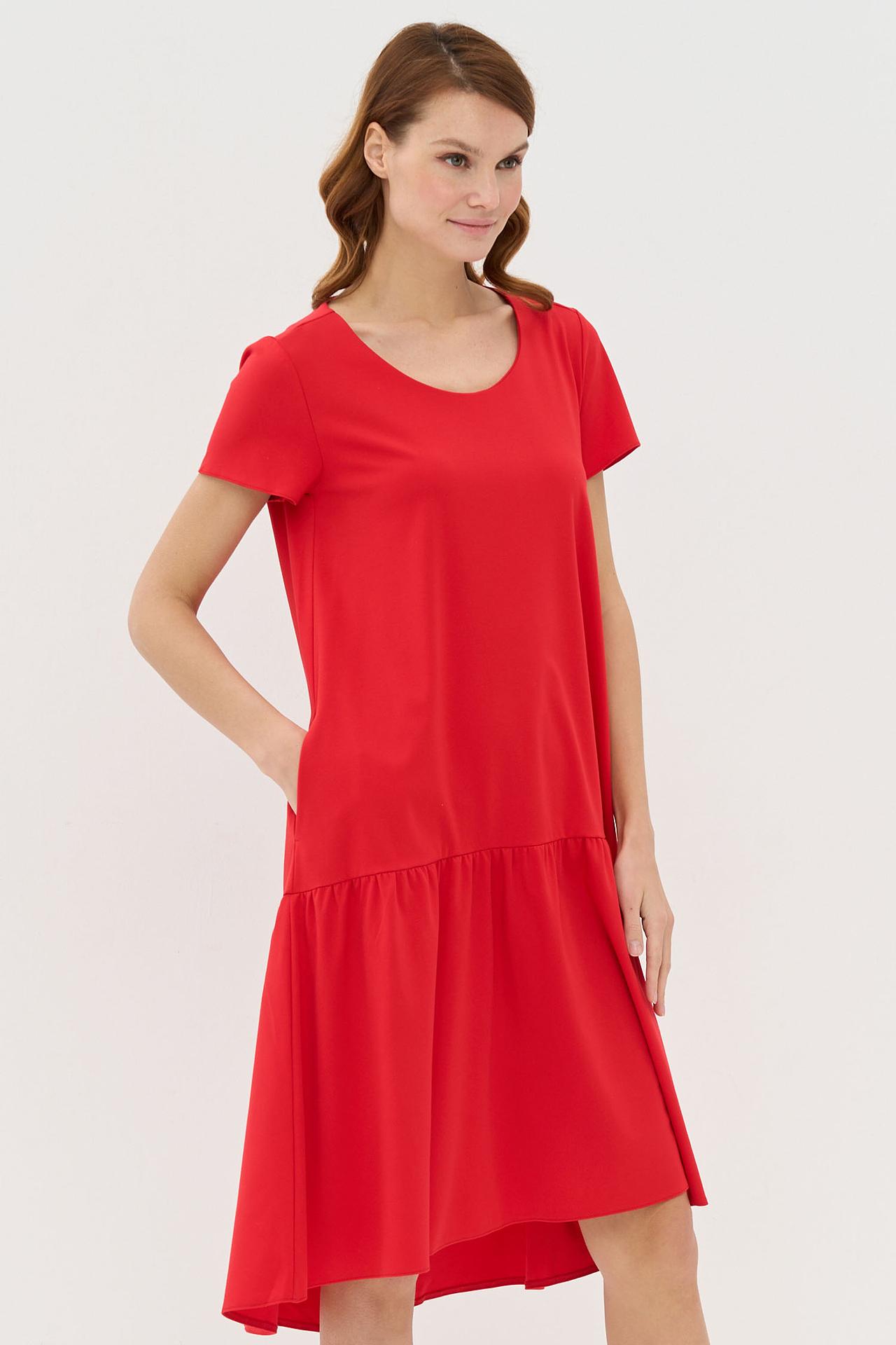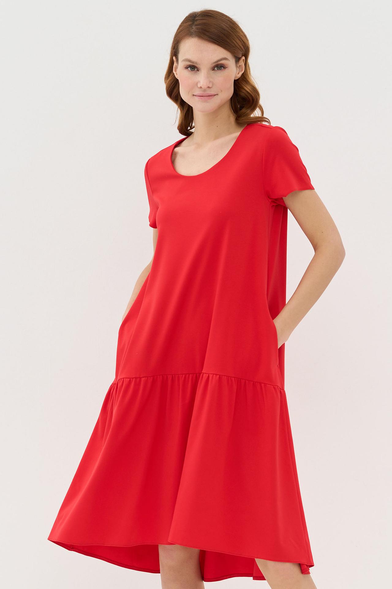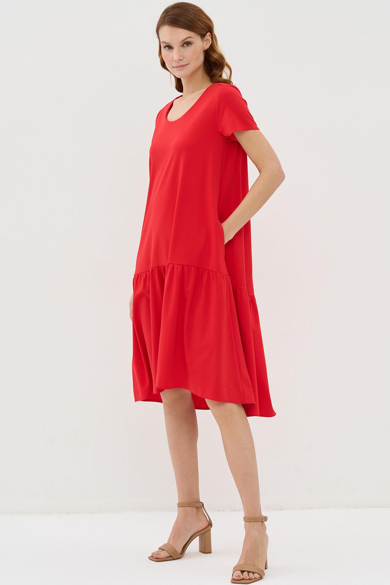 Красное платье VAY трапеция с оборкой и карманами