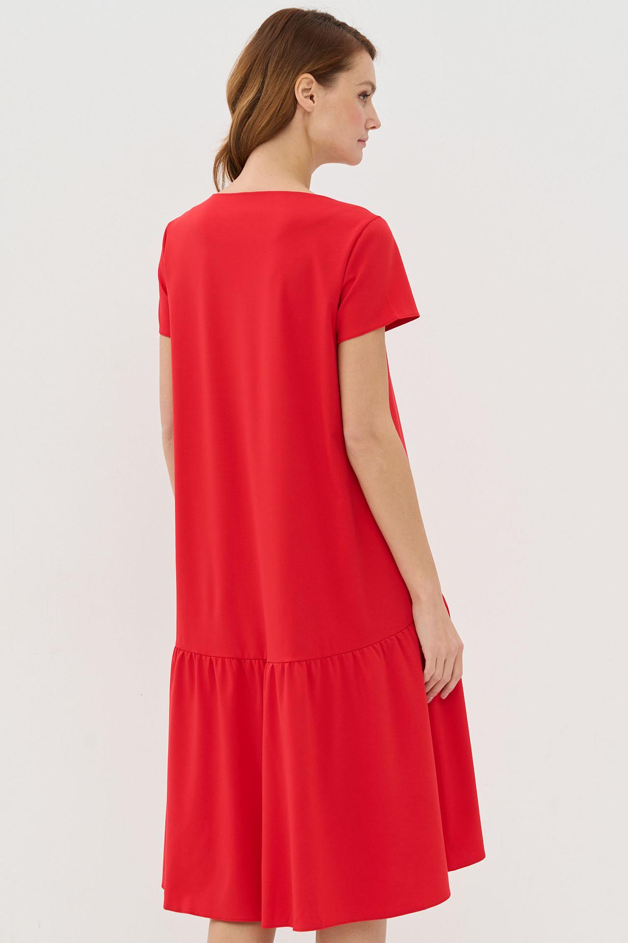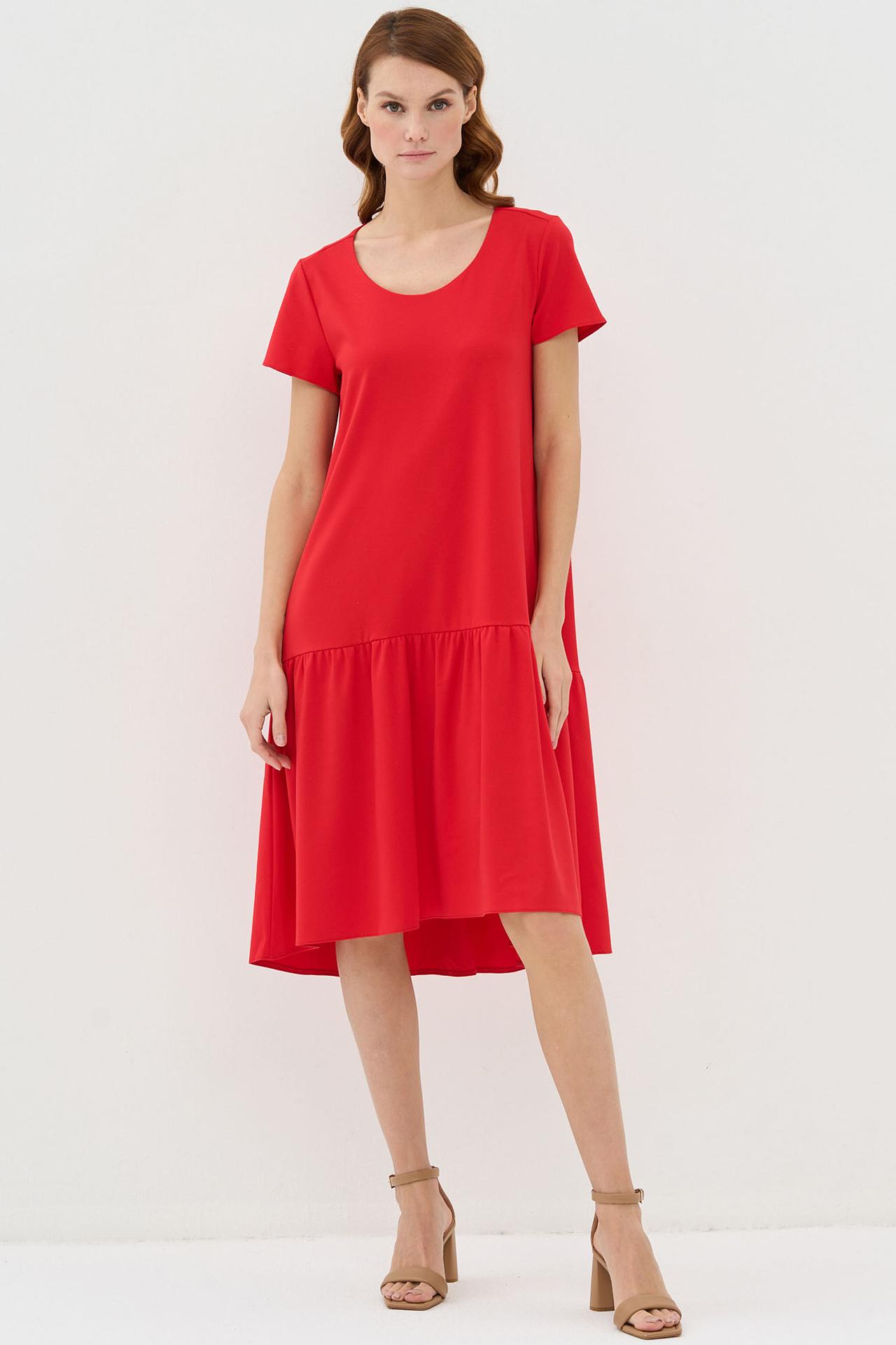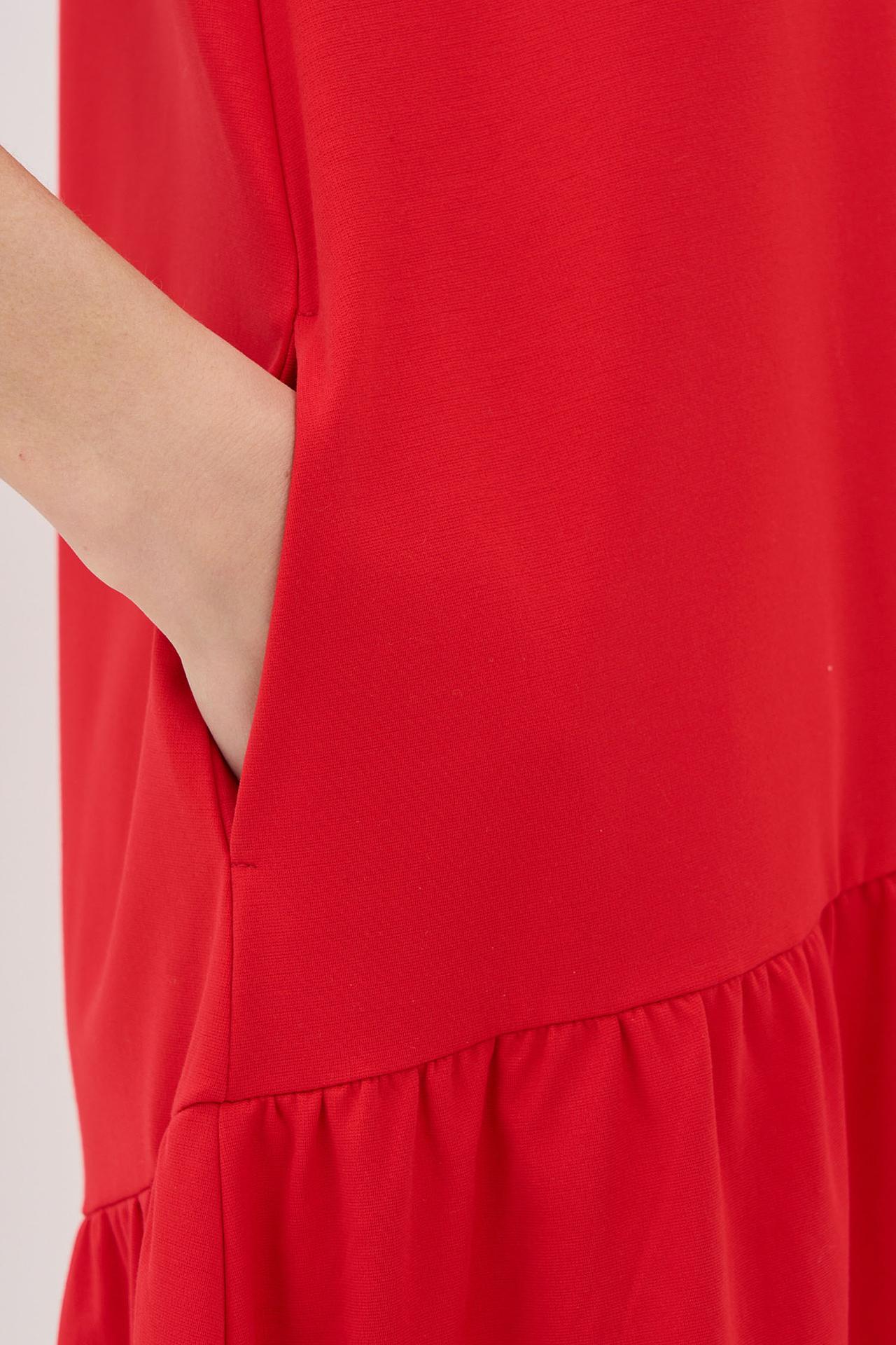 Красное платье VAY трапеция с оборкой и карманами
