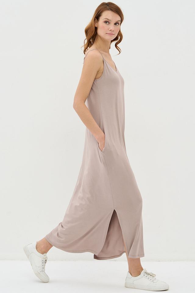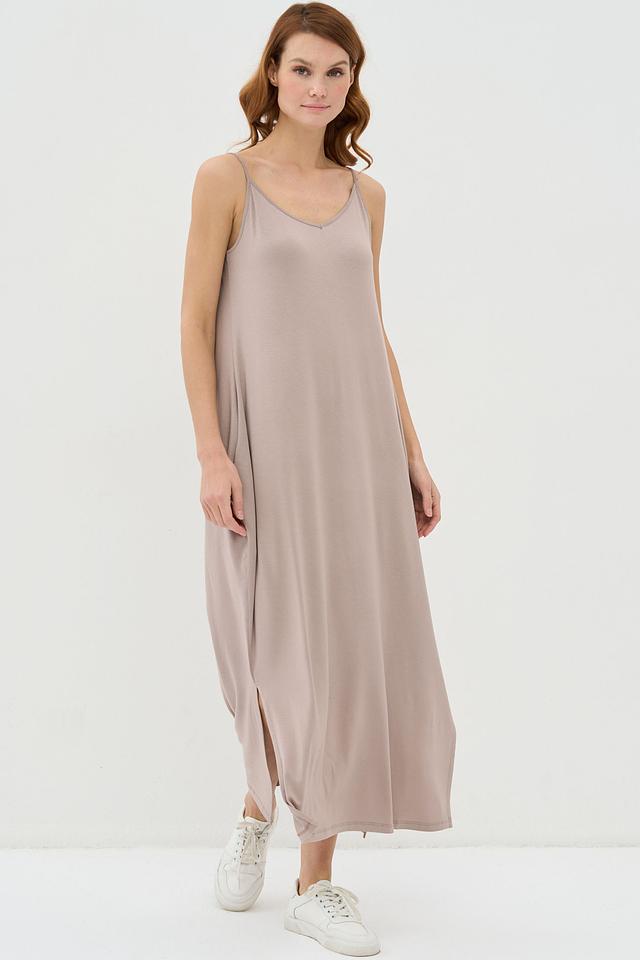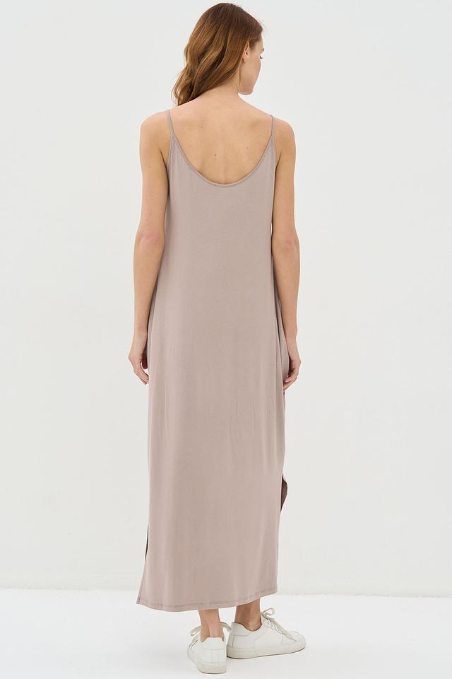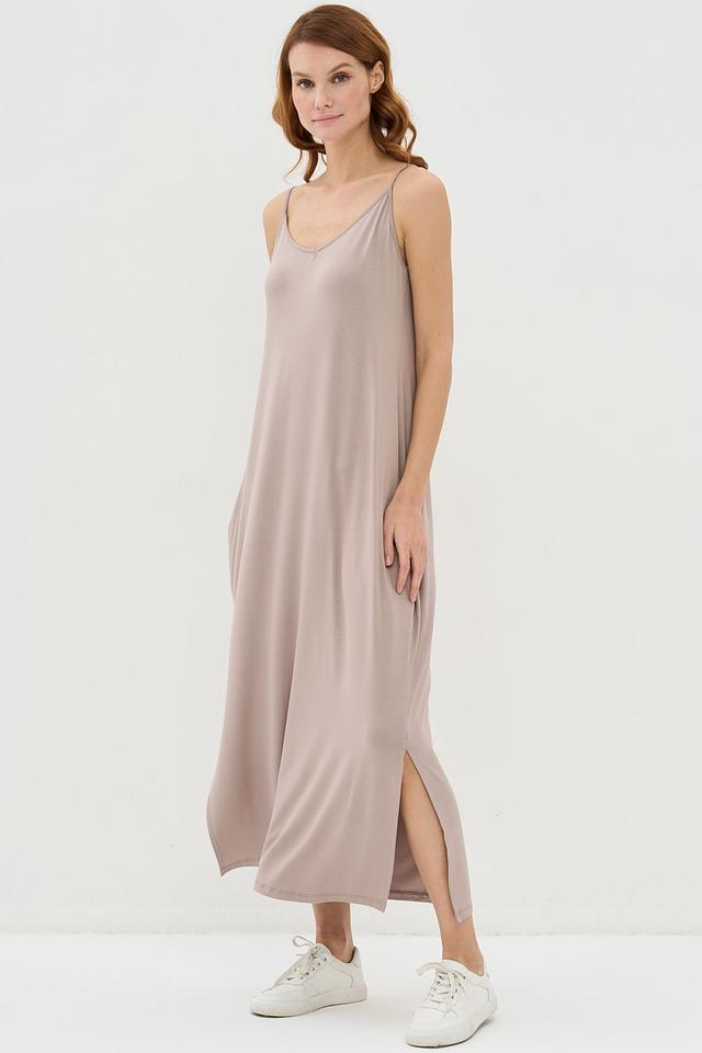 Бежевое платье VAY на тонких бретелях – это идеальный выбор для создания лёгкого и непринуждённого образа. Платье выполнено из мягкой вискозы с добавлением эластана, что обеспечивает комфорт и свободу движений. Модель имеет прямой крой и боковой разрез. Состав: вискоза 95%, эластан 5%