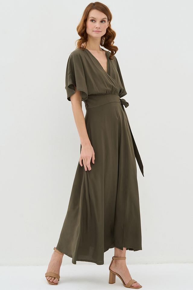 Платье VAY с запахом оливковое