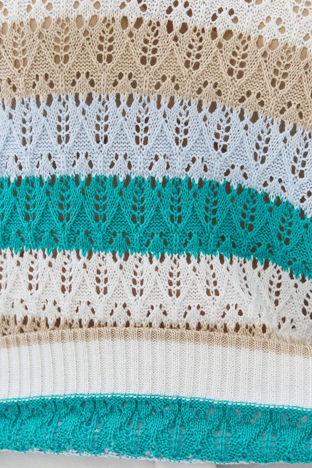 Этот стильный джемпер от VAY станет отличным дополнением к вашему гардеробу. Модель выполнена в полосатом дизайне, сочетающем в себе оттенки голубого, бежевого и белого, что придает ей свежий и летний вид.