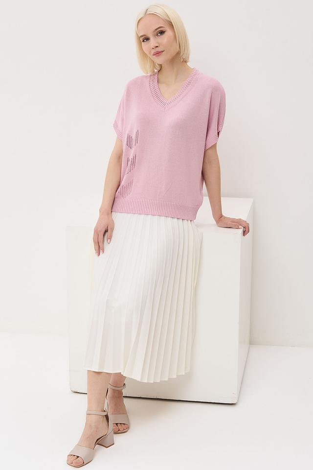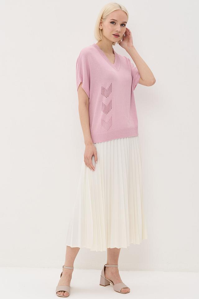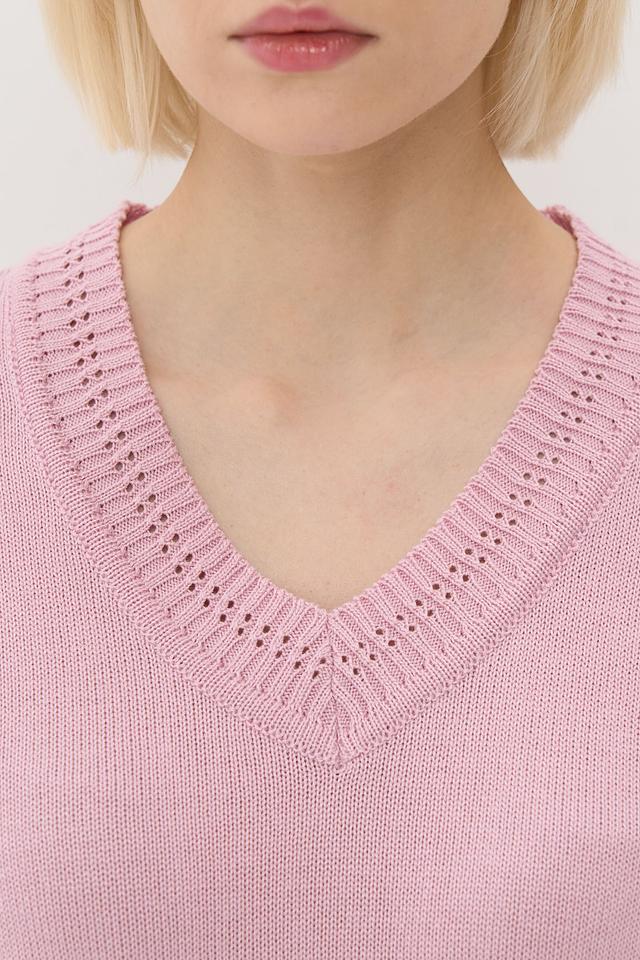 Розовый пуловер от VAY – это стильный и удобный выбор для создания модных образов. Модель имеет V-образный вырез и деликатное вязание с декоративными элементами в виде вырезанных сердечек. Состав: