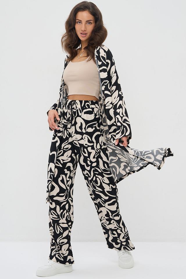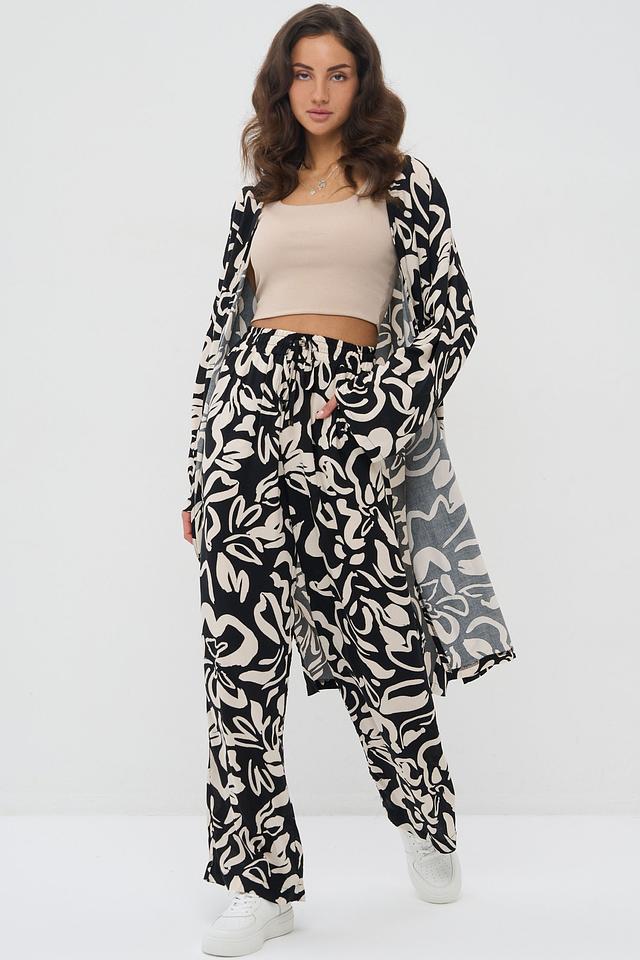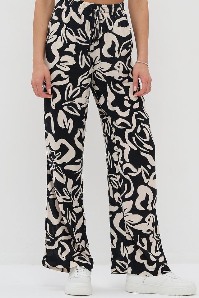 Женские брюки VAY чёрно-бежевого цвета с оригинальным цветочным принтом станут стильным дополнением к вашему гардеробу. Модель выполнена из мягкой вискозы, обеспечивающей комфорт в носке. Состав: вискоза 100%
