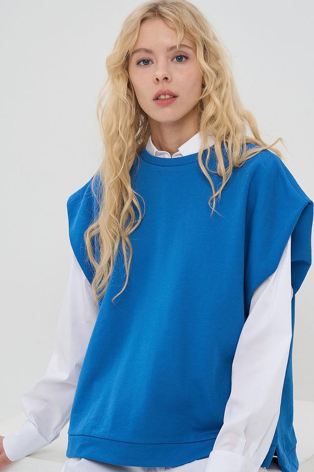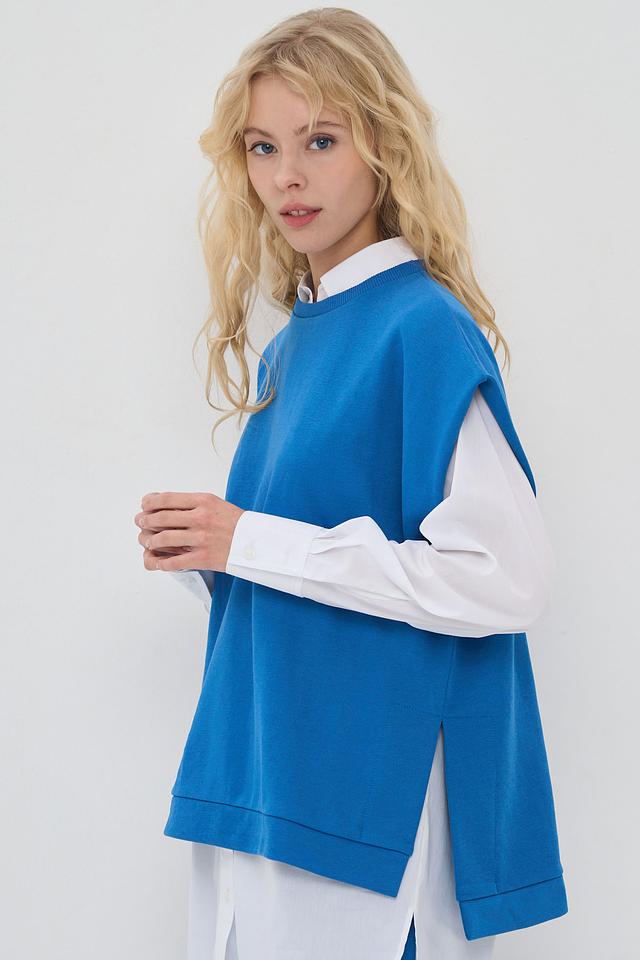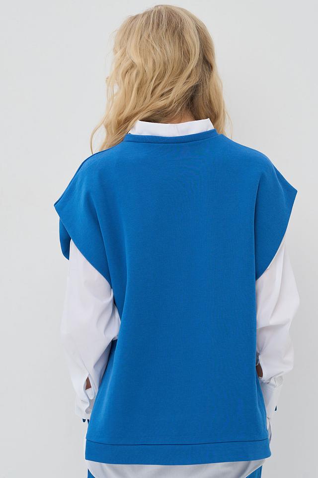 Этот жилет от VAY выполнен в насыщенном синем цвете и станет прекрасным дополнением к вашему гардеробу. Он имеет прямой крой и круглый вырез горловины, что делает его универсальным и подходящим для различных стилей.