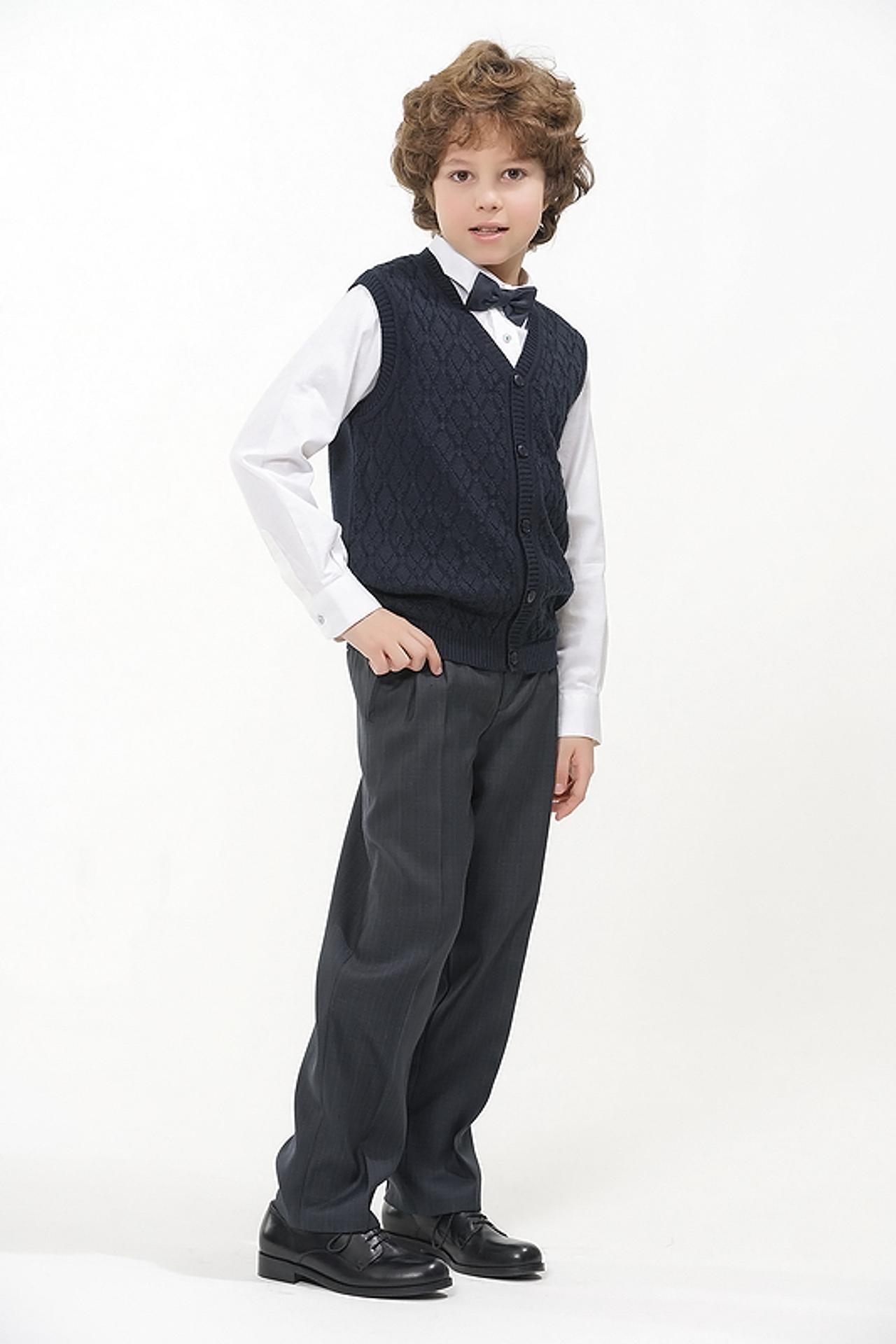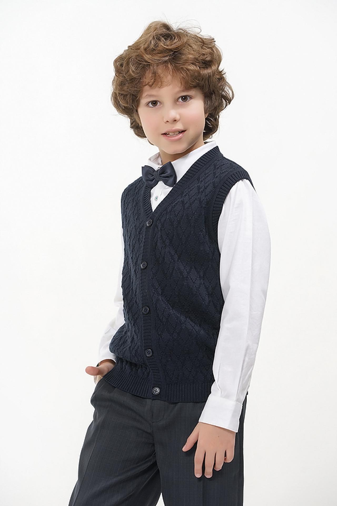 Жилет VAY синий для мальчика с вязаным узором и пуговицами