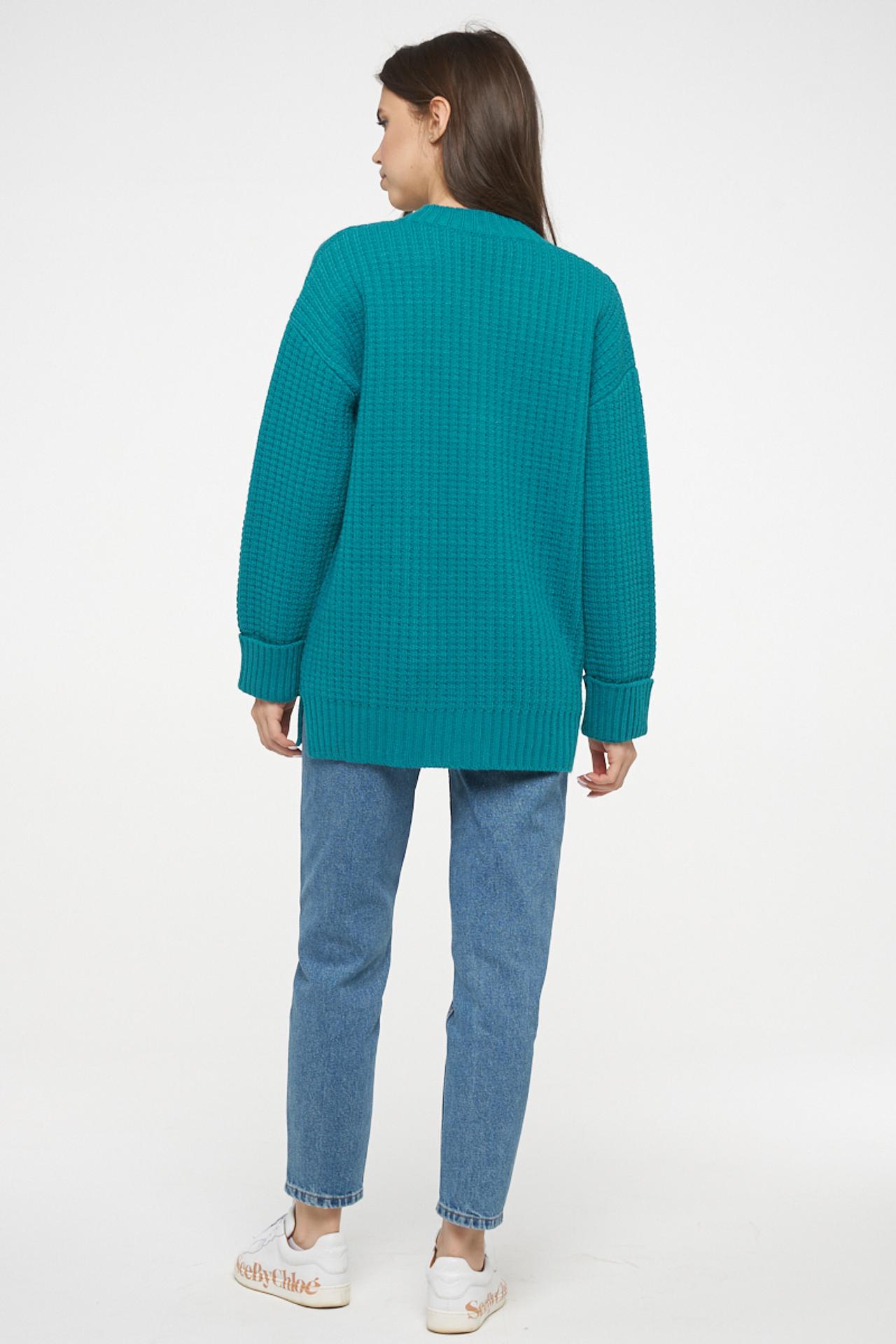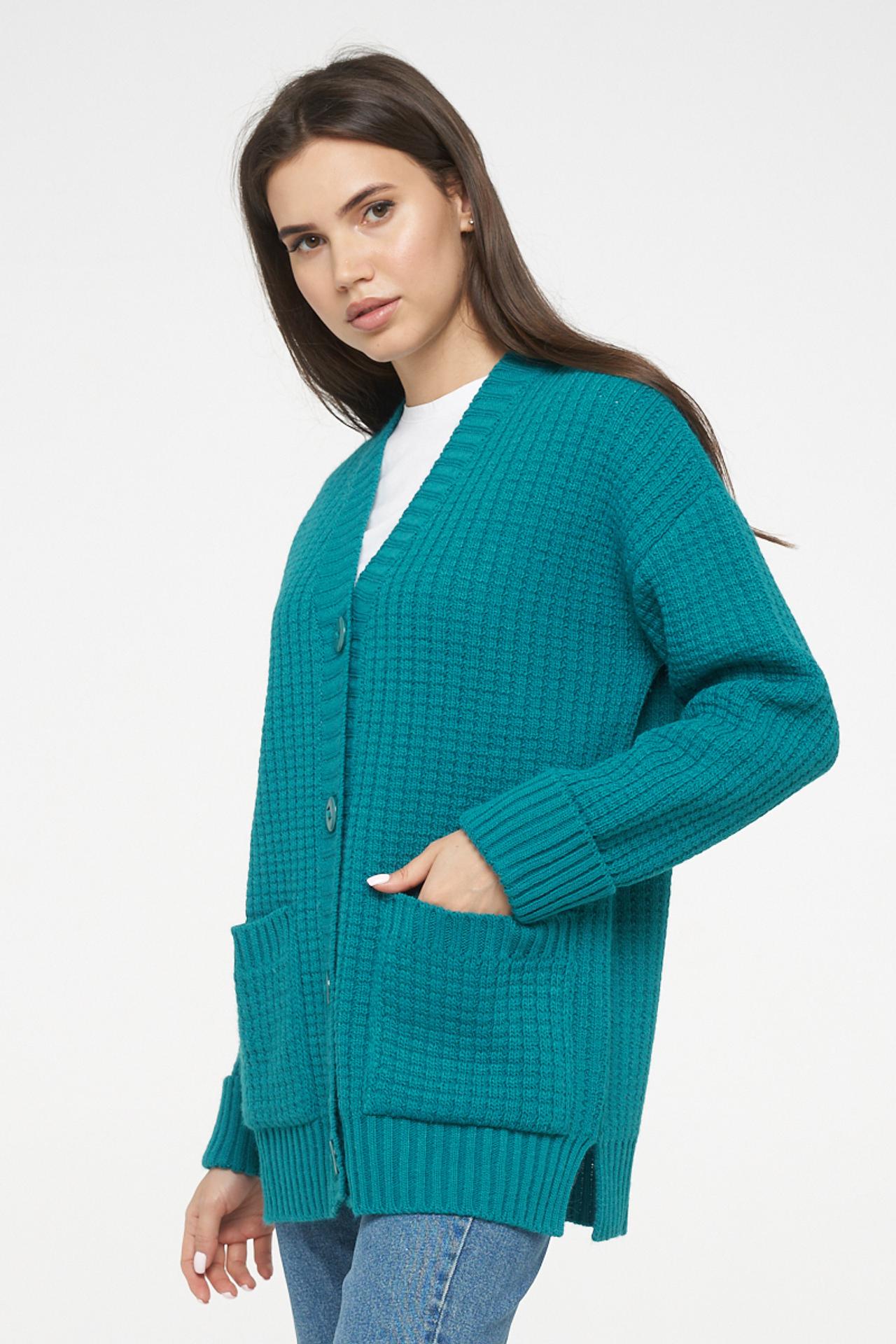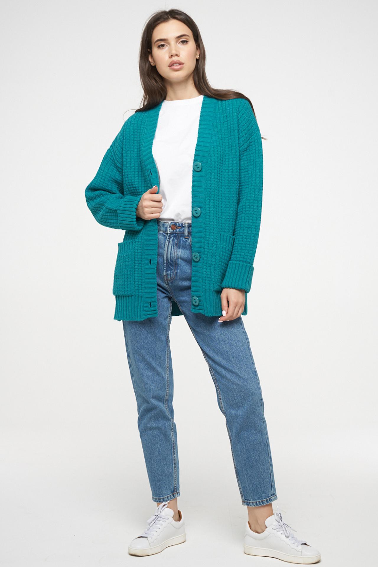 Кардиган VAY вязаный бирюзовый на пуговицах с накладными карманами
