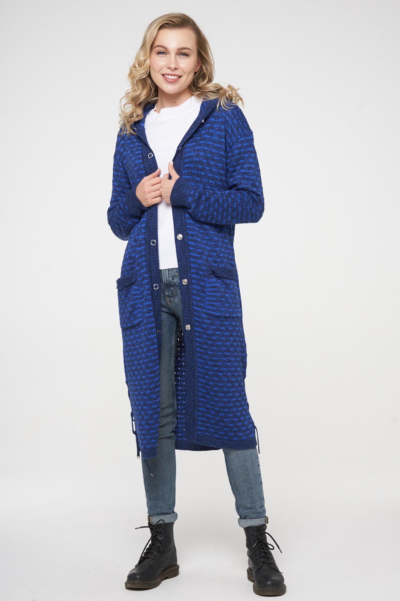 Этот синий кардиган с капюшоном выполнен из высококачественных материалов. Благодаря своему элегантному дизайну и удобному крою он станет отличным выбором для повседневной носки. Декоративные завязки по бокам добавляют образу неповторимости и шарма.