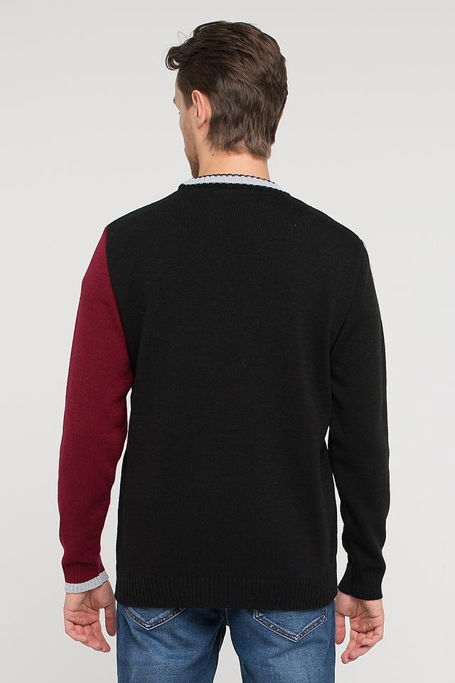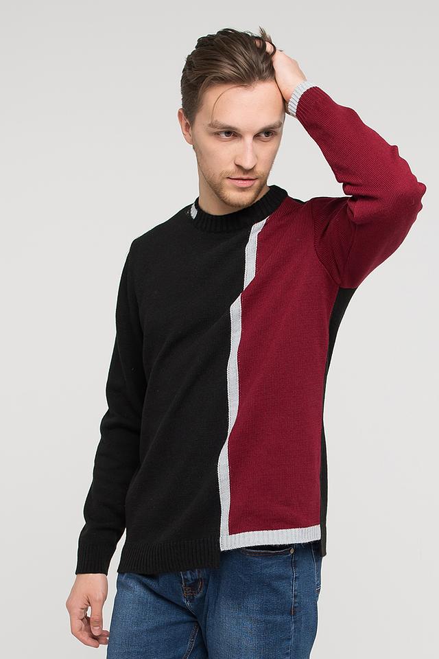 Мужской джемпер от VAY – это стильное и практичное решение для создания повседневного образа. Модель выполнена в сочетании чёрного и бордового цветов, что придает ей оригинальность и выразительность.