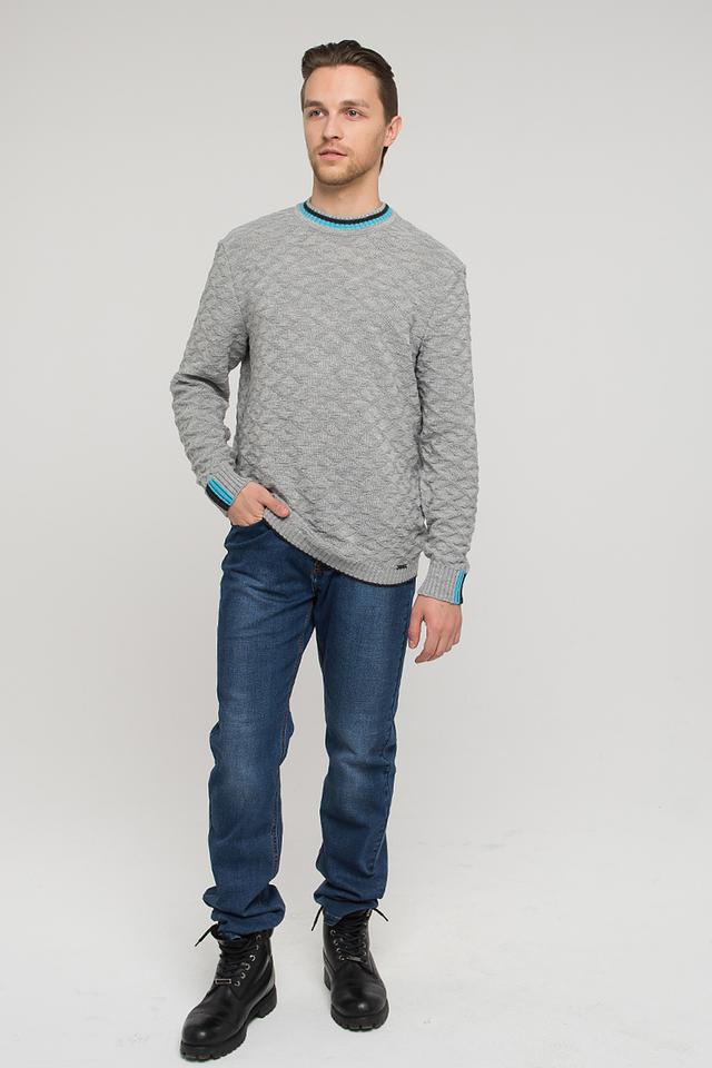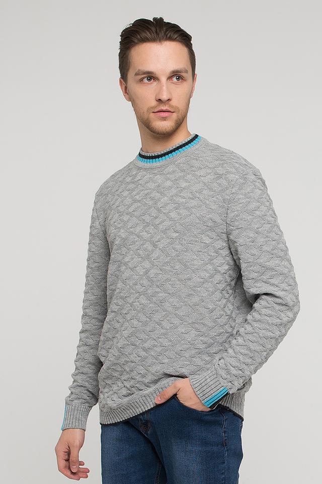 Мужской джемпер VAY серого цвета с рельефным узором и отделкой на горловине и манжетах. Изготовлен из мягкой и тёплой шерсти с добавлением пан. Идеальный выбор для создания комфортного и стильного образа. Состав: шерсть 50%, пан 50%