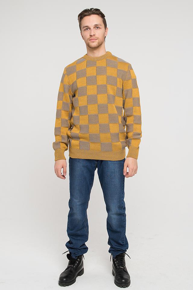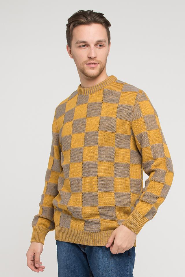 Мужской джемпер VAY горчичного цвета с оригинальным клетчатым узором. Изготовлен из мягкой и приятной к телу смеси хлопка и шерсти, обеспечивающей комфорт и тепло. Идеально подходит для создания стильного повседневного образа. Состав: пан 70%, шерсть 30%