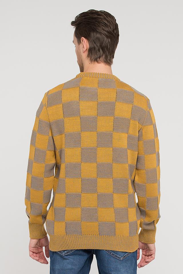 Джемпер VAY – это стильное и практичное решение для вашего гардероба. Модель выполнена в горчичном цвете и украшена выразительным клетчатым узором, сочетающим в себе оттенки горчичного и серого.