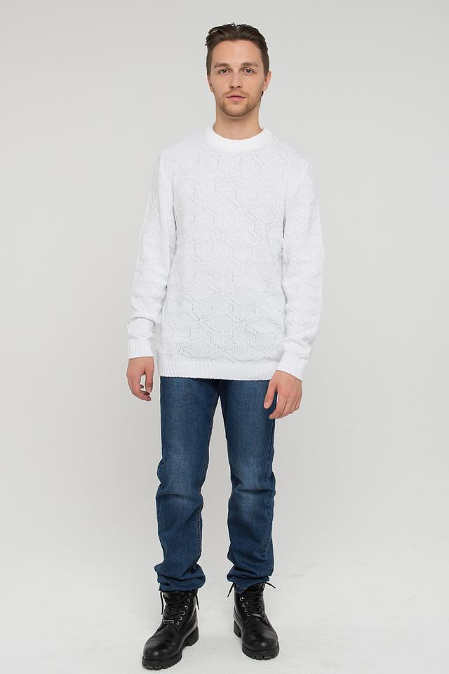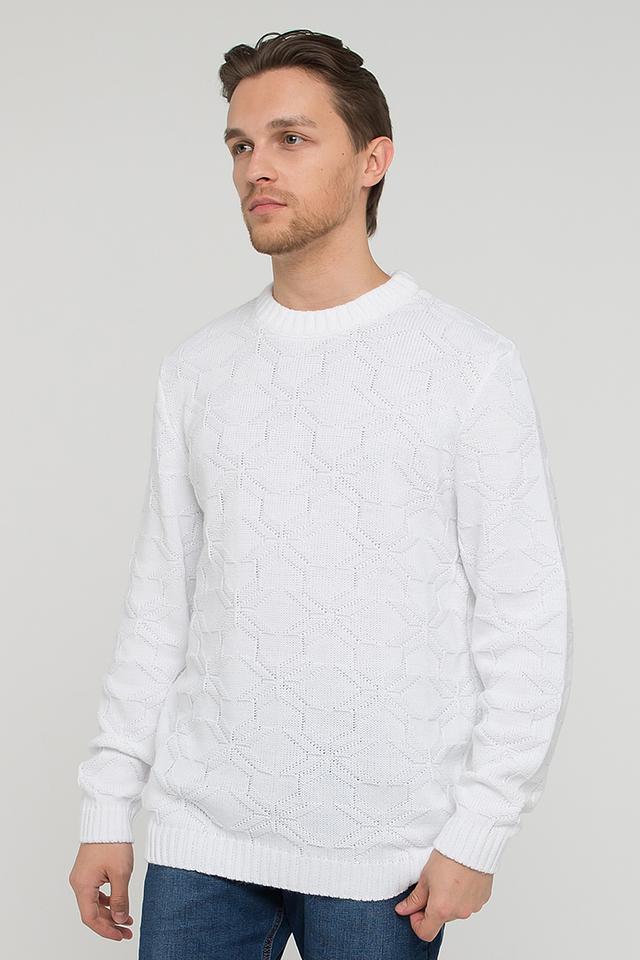 Мужской джемпер от VAY выполнен в белом цвете и отличается оригинальным геометрическим узором, который придает ему особый шарм.