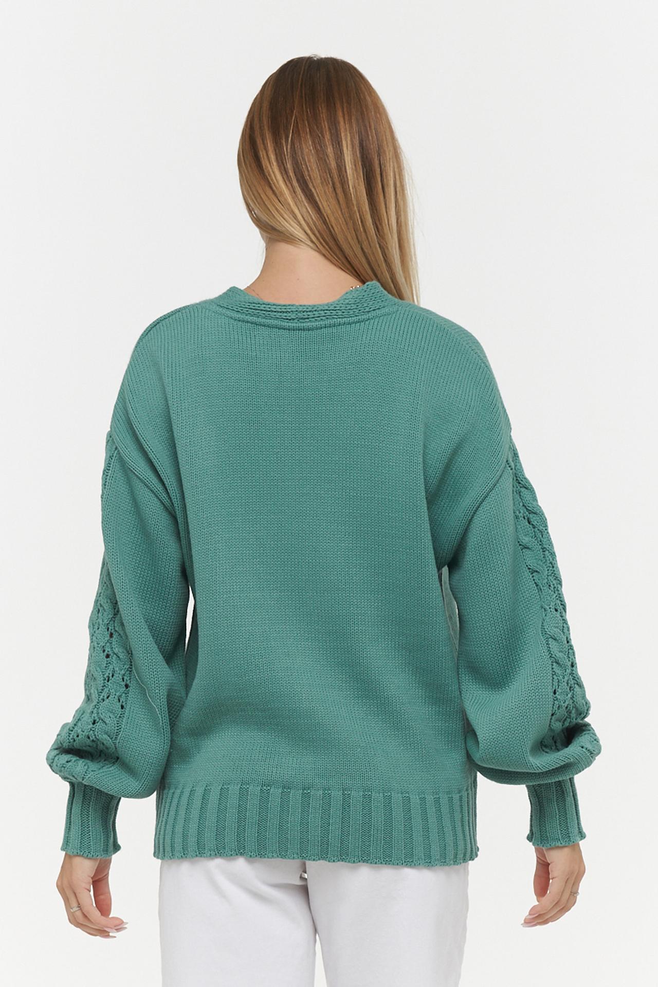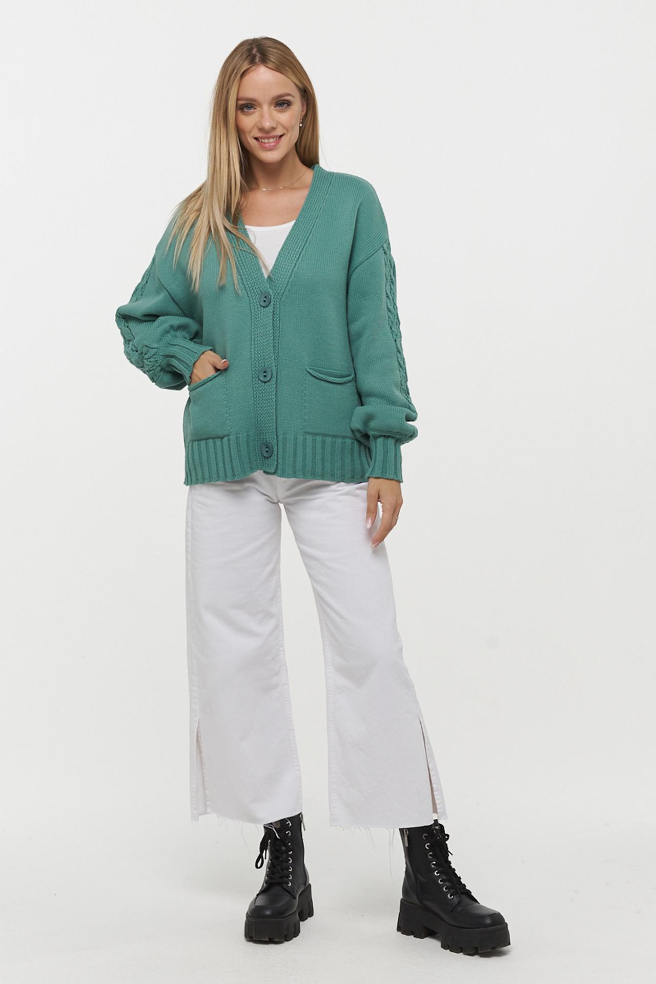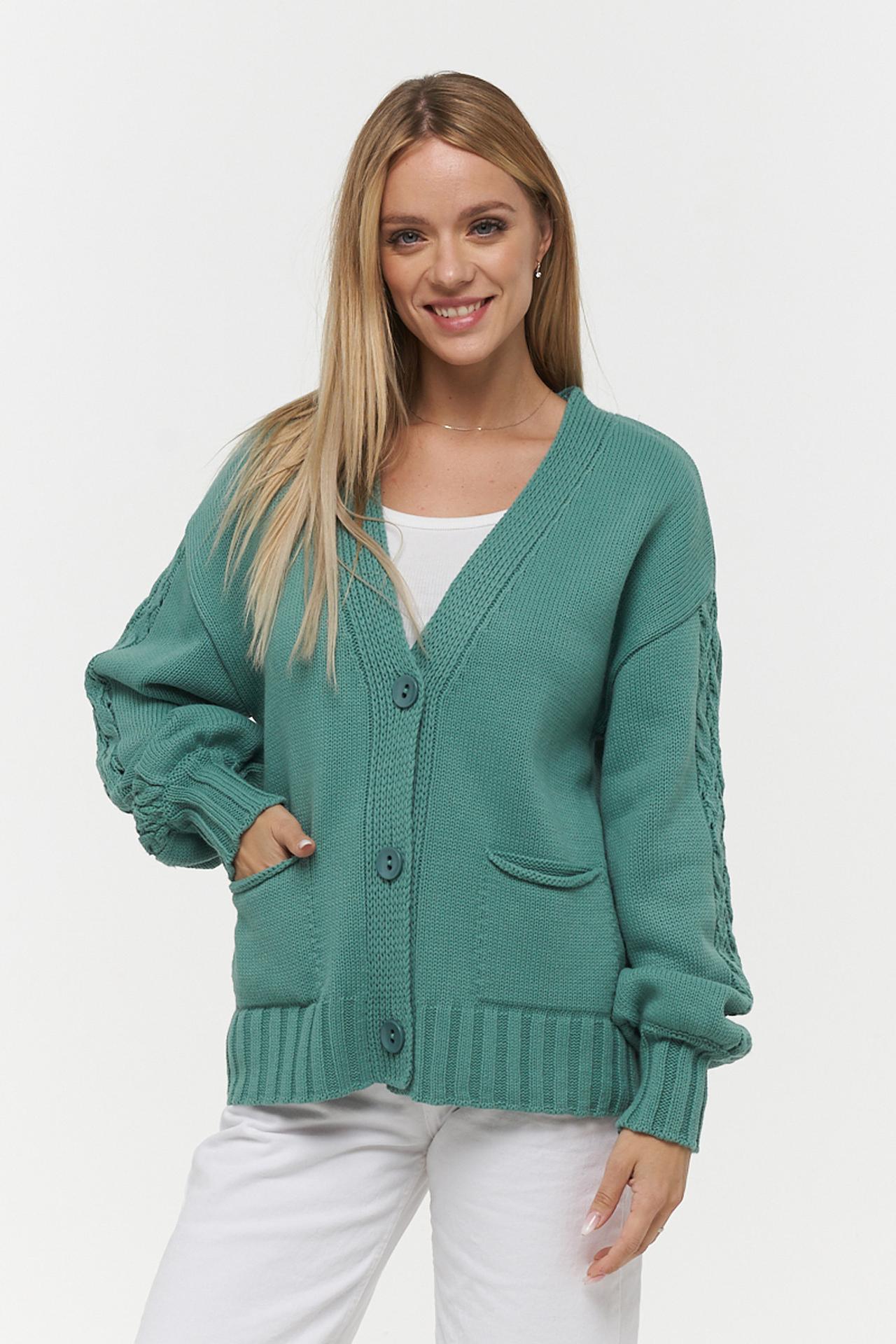 Кардиган вязаный VAY изумрудный с узором косичка на рукавах