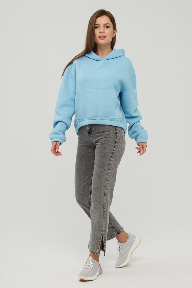 Женская толстовка VAY голубого цвета – это комфорт и стиль в одном изделии. Модель оверсайз кроя с капюшоном и накладным карманом идеально подходит для создания повседневных образов. Состав: хлопок 95%, эластан 5%