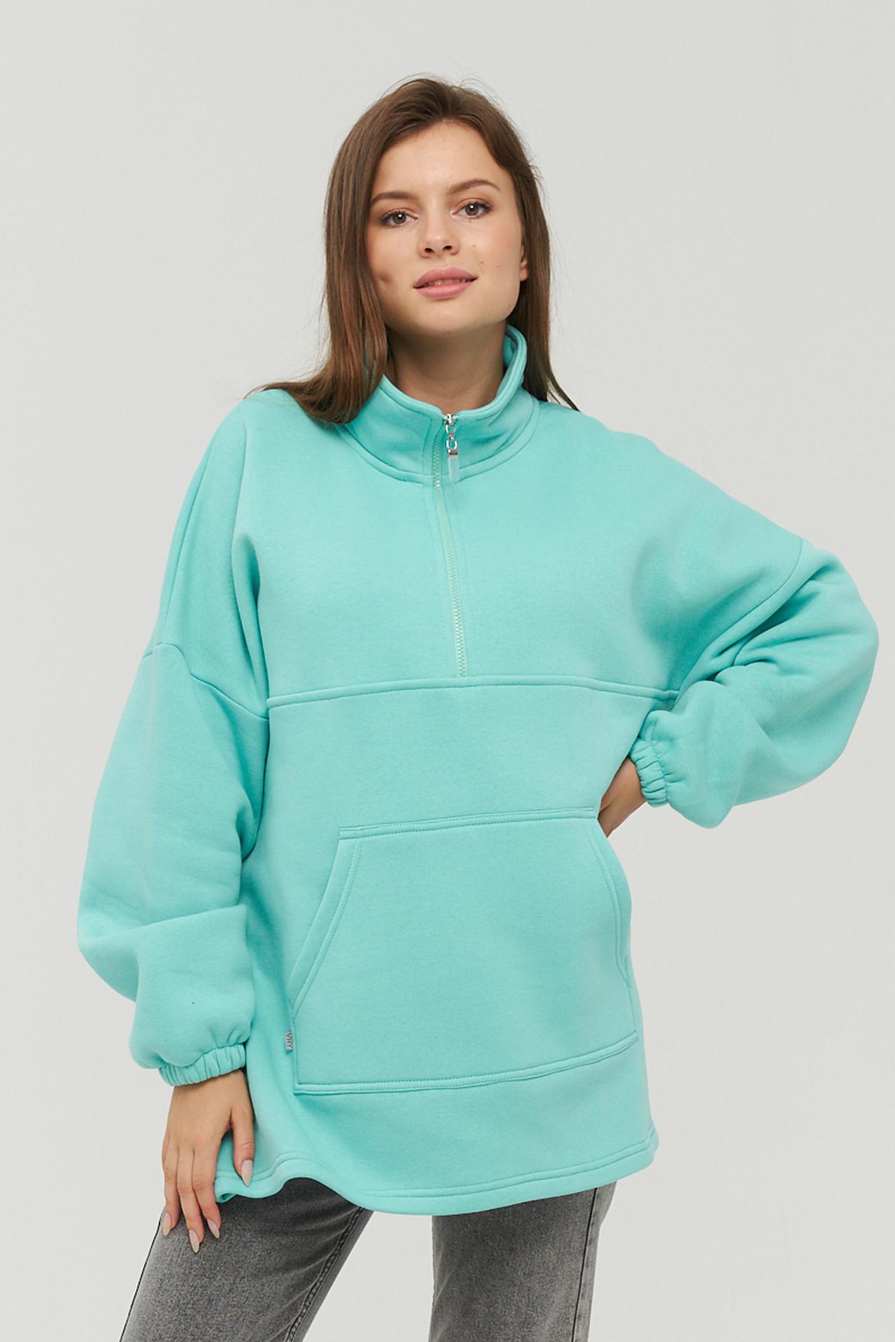 Толстовка VAY оверсайз голубая с молнией и карманом