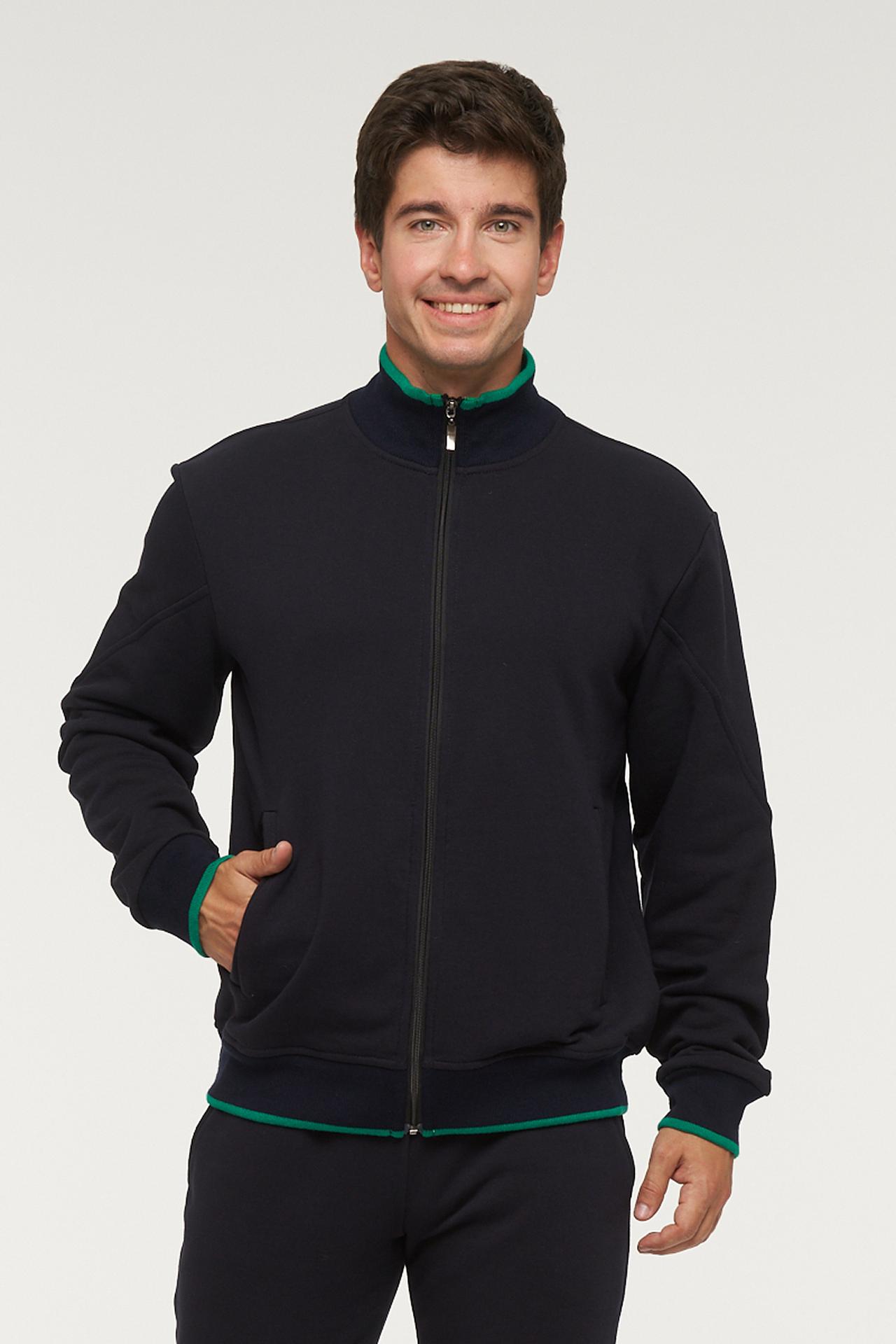 Этот трикотажный спортивный костюм отлично подходит для создания образа в спортивном стиле и подчеркивает вашу индивидуальность. Костюм представлен в классическом синем цвете с зеленой отделкой.