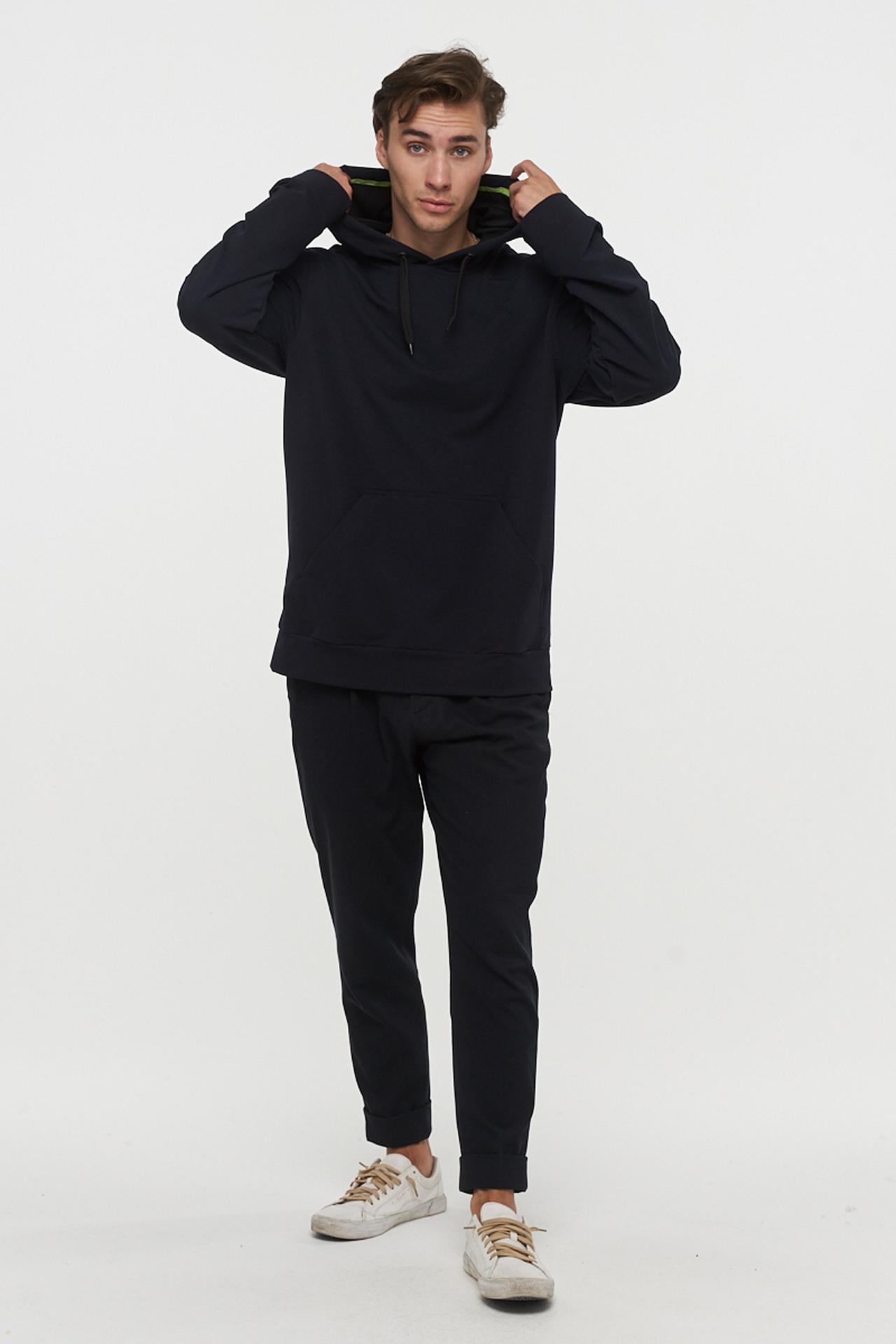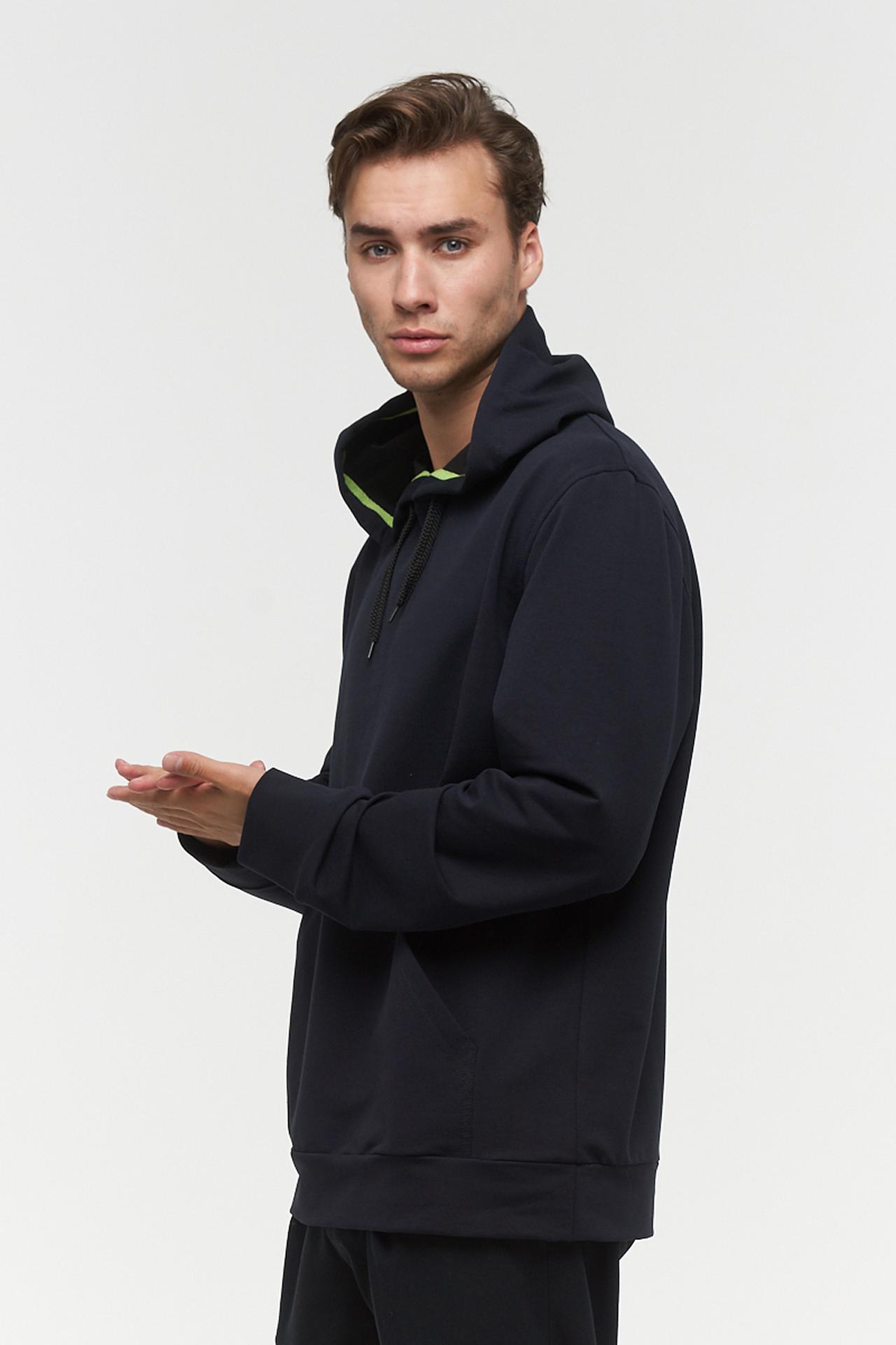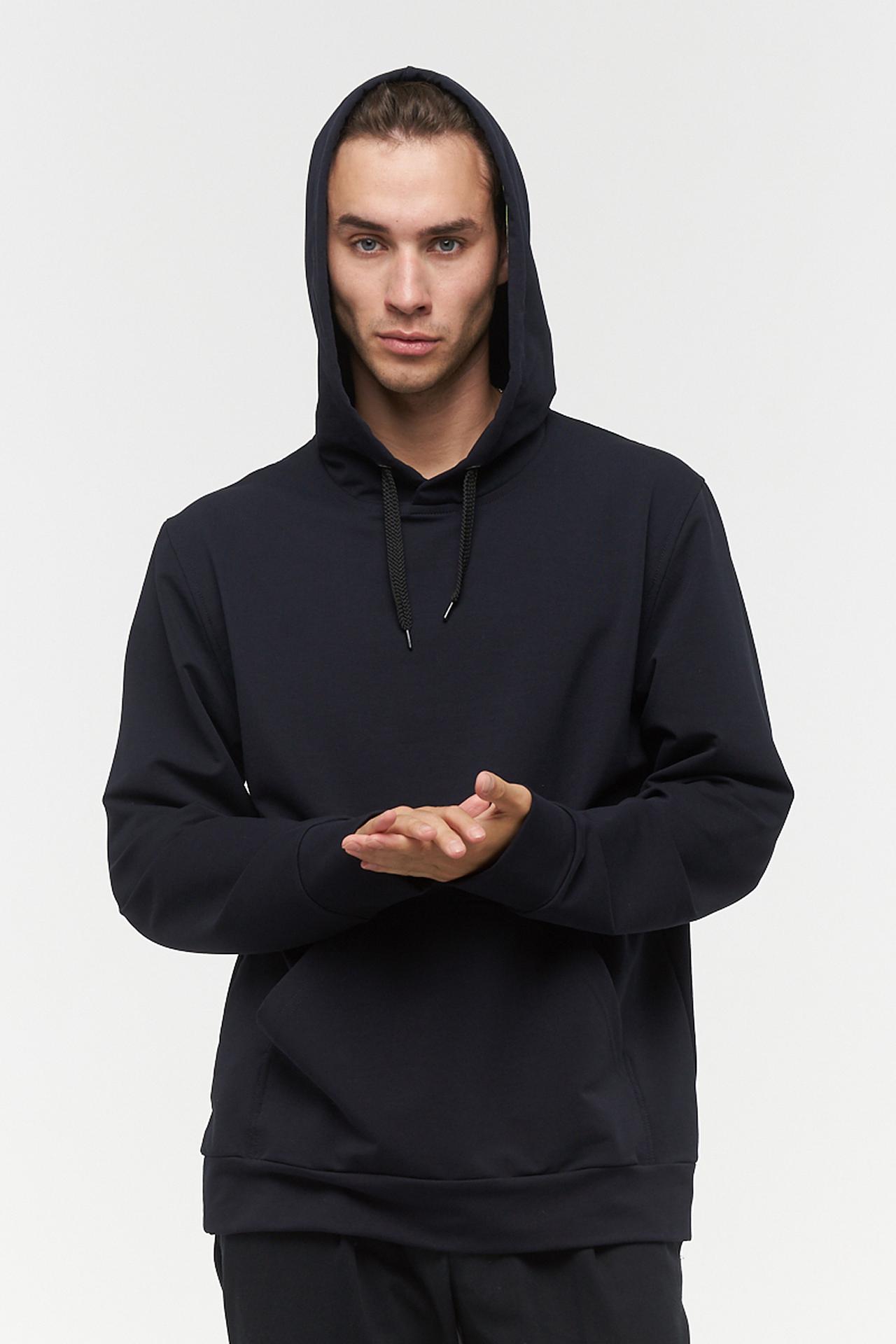 - Дизайн: Классическая мужская толстовка с капюшоном и передним карманом-кенгуру. Лаконичный крой и универсальный темно-синий цвет делают эту модель отличной базой для создания разнообразных образов. Шнурки в капюшоне позволяют регулировать посадку.