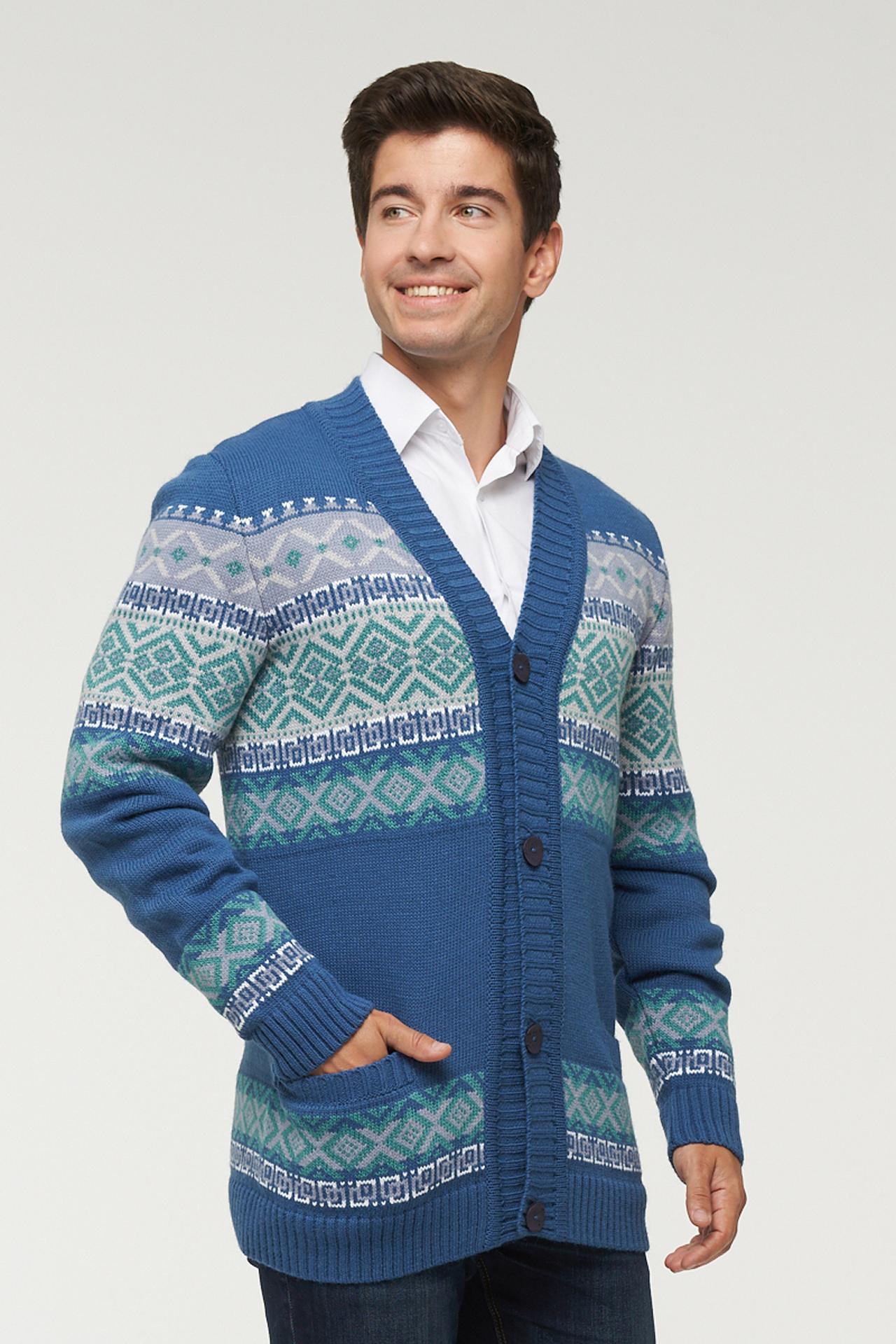 Кардиган VAY мужской синий с жаккардовым узором на пуговицах
