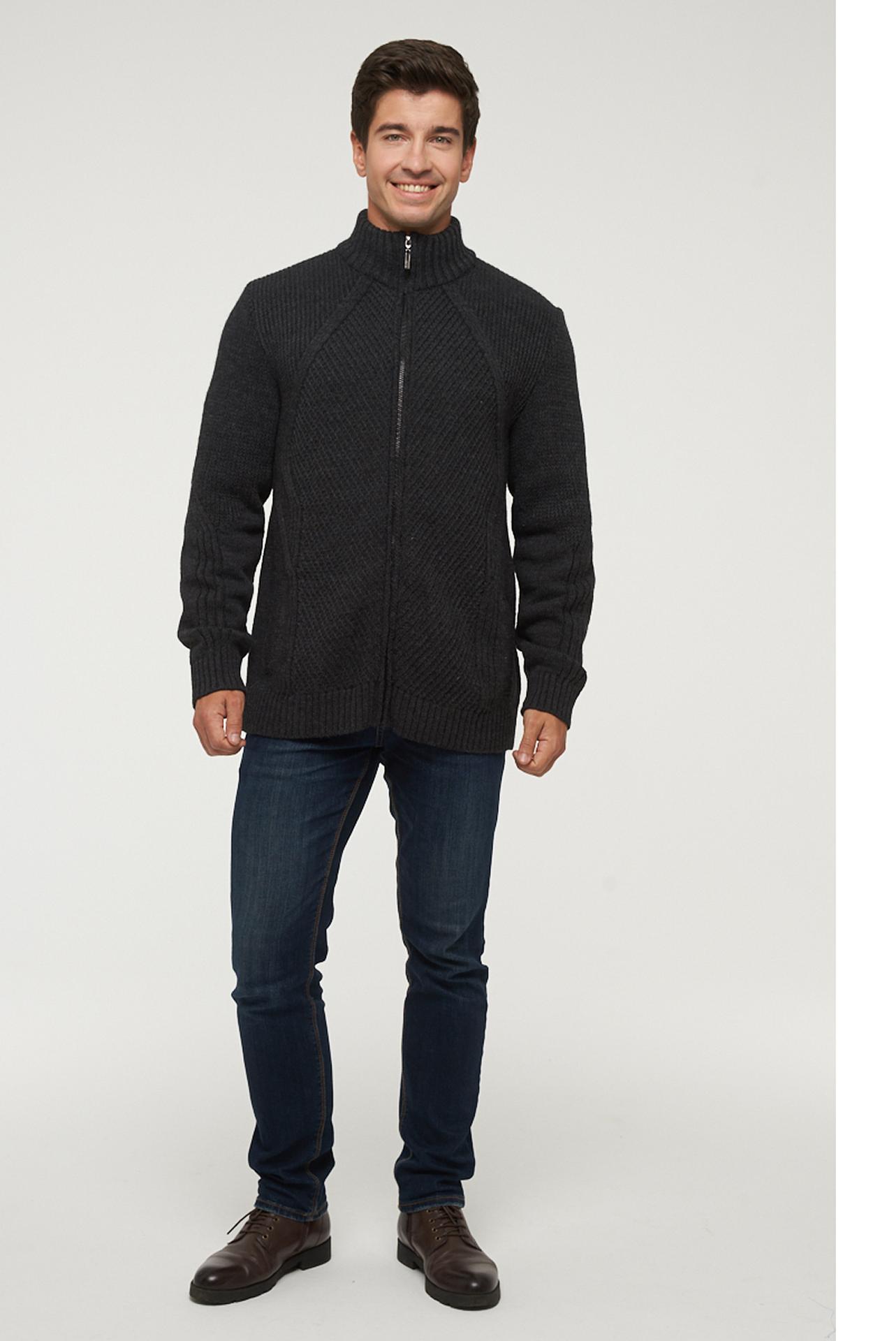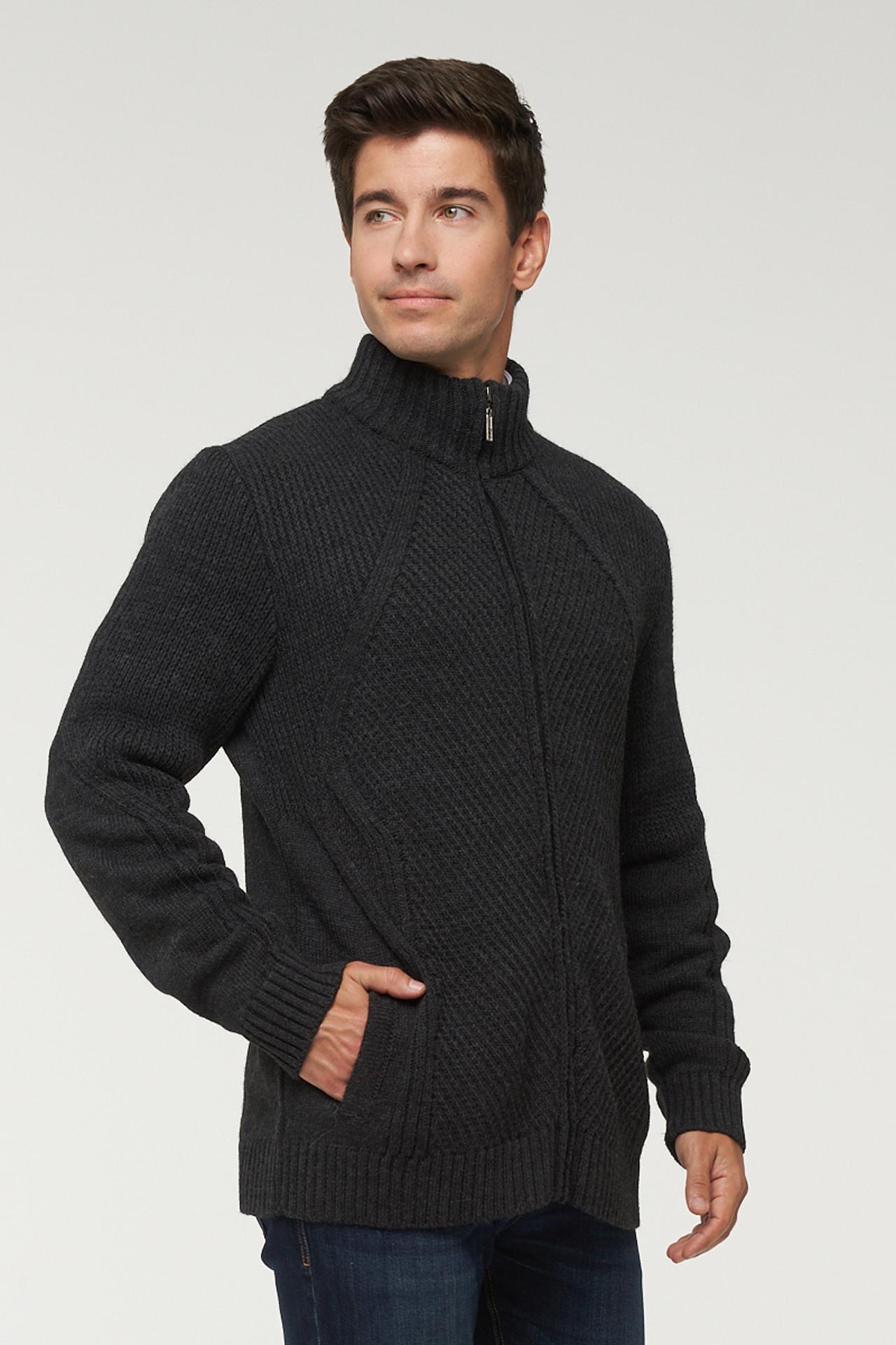 - Дизайн: Классический мужской кардиган на молнии с высоким воротником. Элегантный узор вязки придает изделию современный вид.