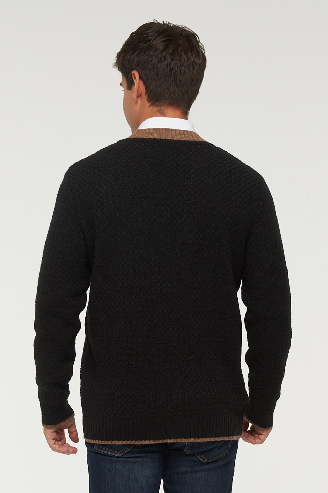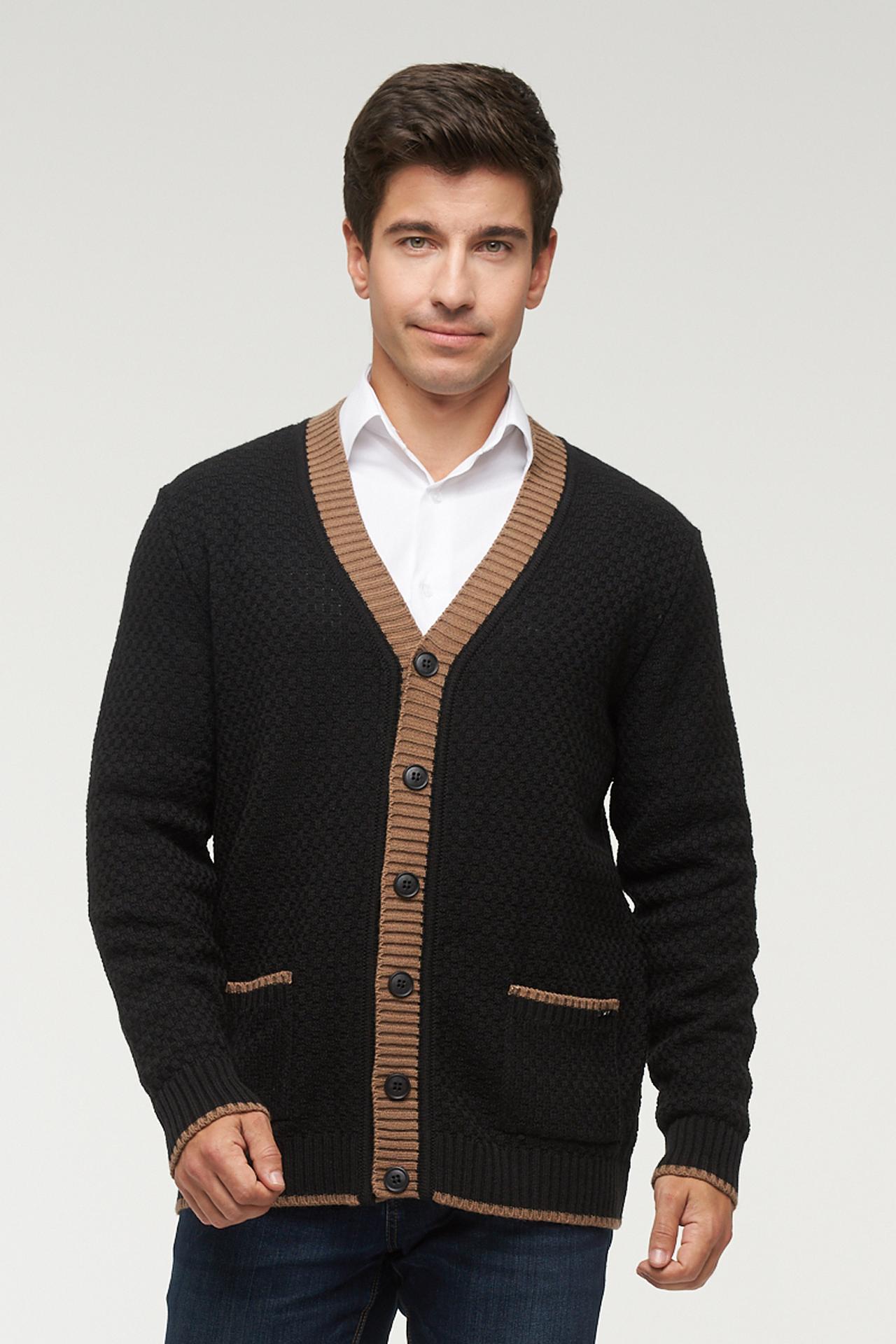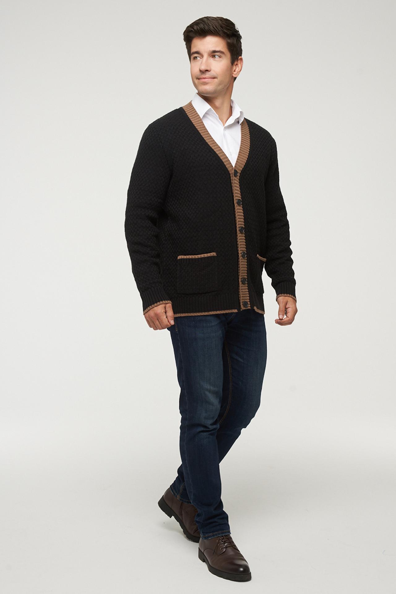 Кардиган VAY мужской чёрный с коричневой отделкой