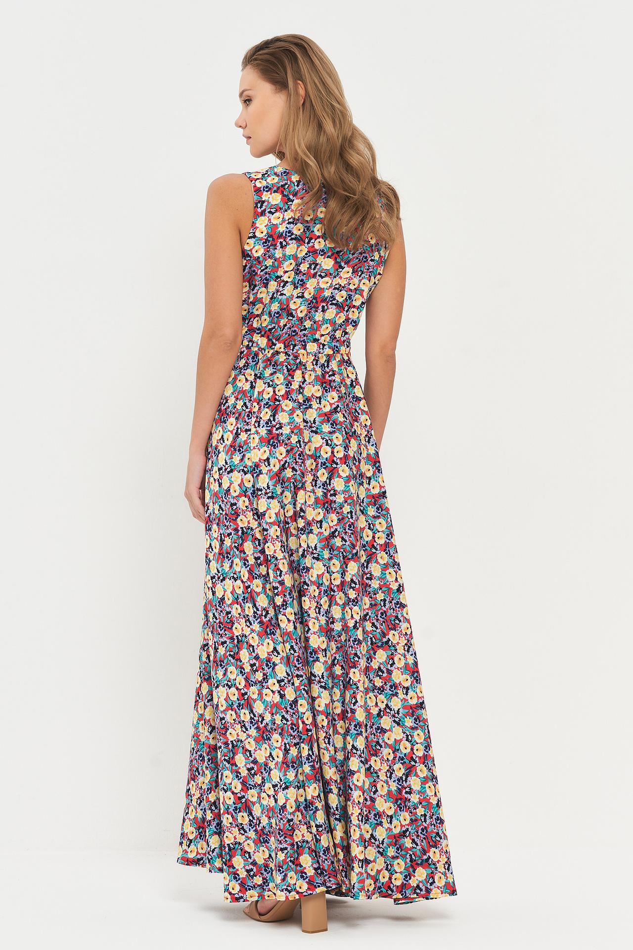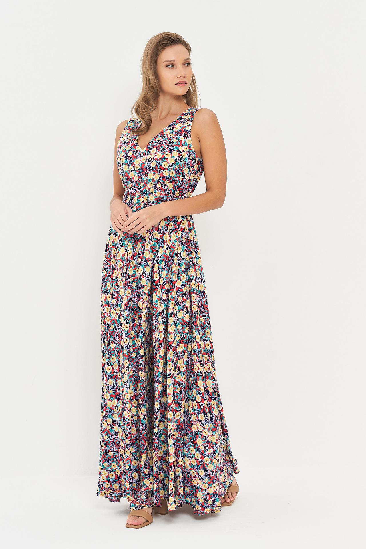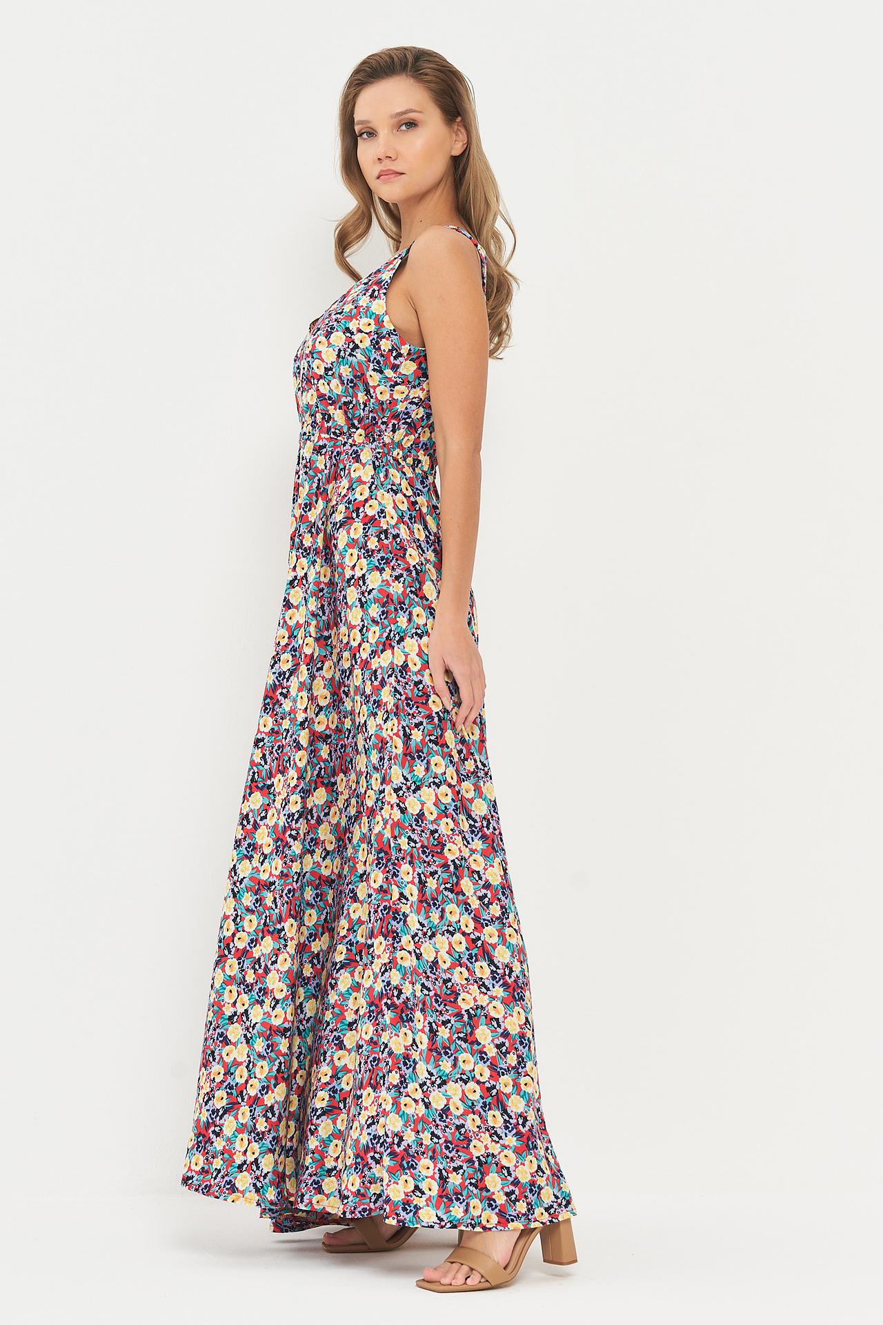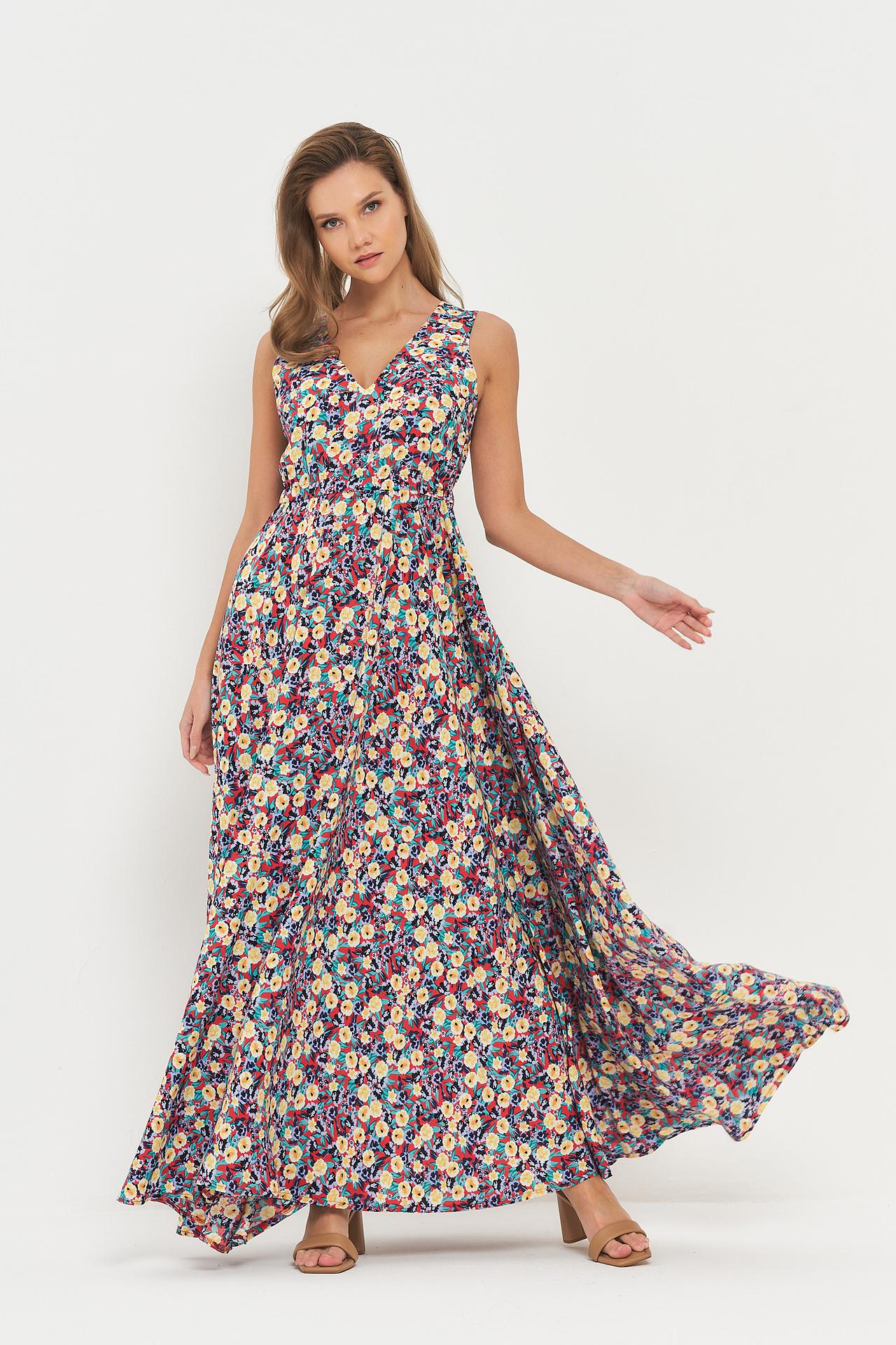 Платье выполнено из легкой, дышащей вискозы, обеспечивающей максимальный комфорт в течение всего дня. Вискоза приятна к телу, что делает это платье идеальным для летнего сезона. Цветочный принт добавляет образу женственности и романтичности.