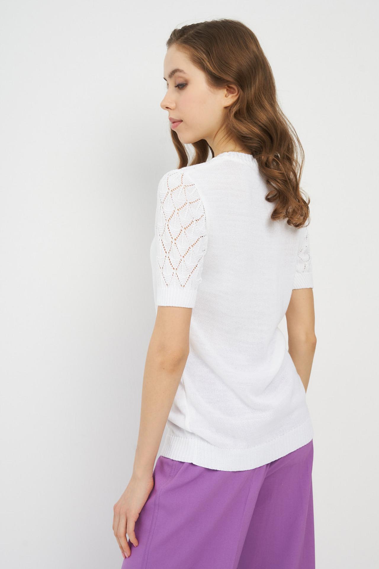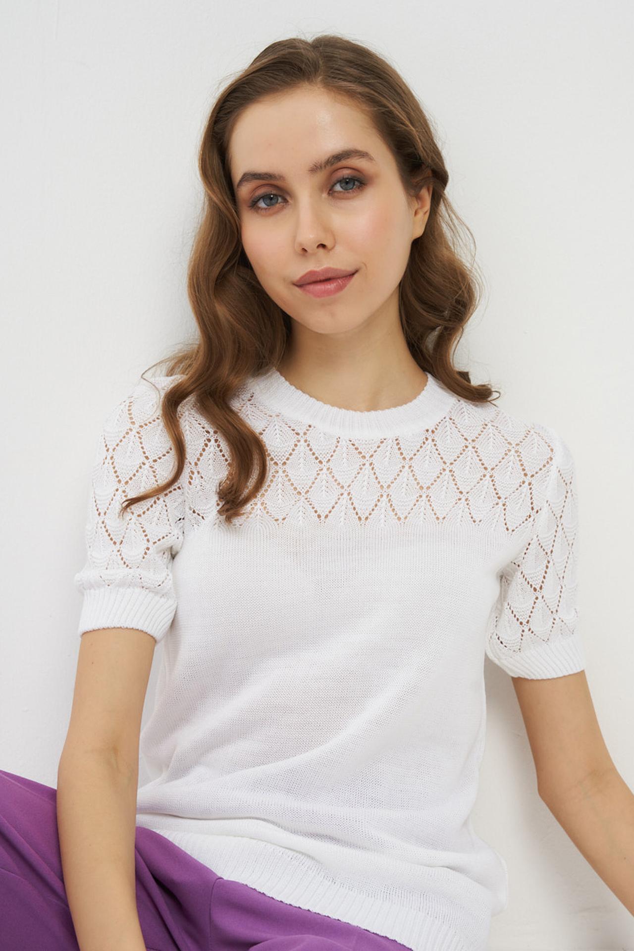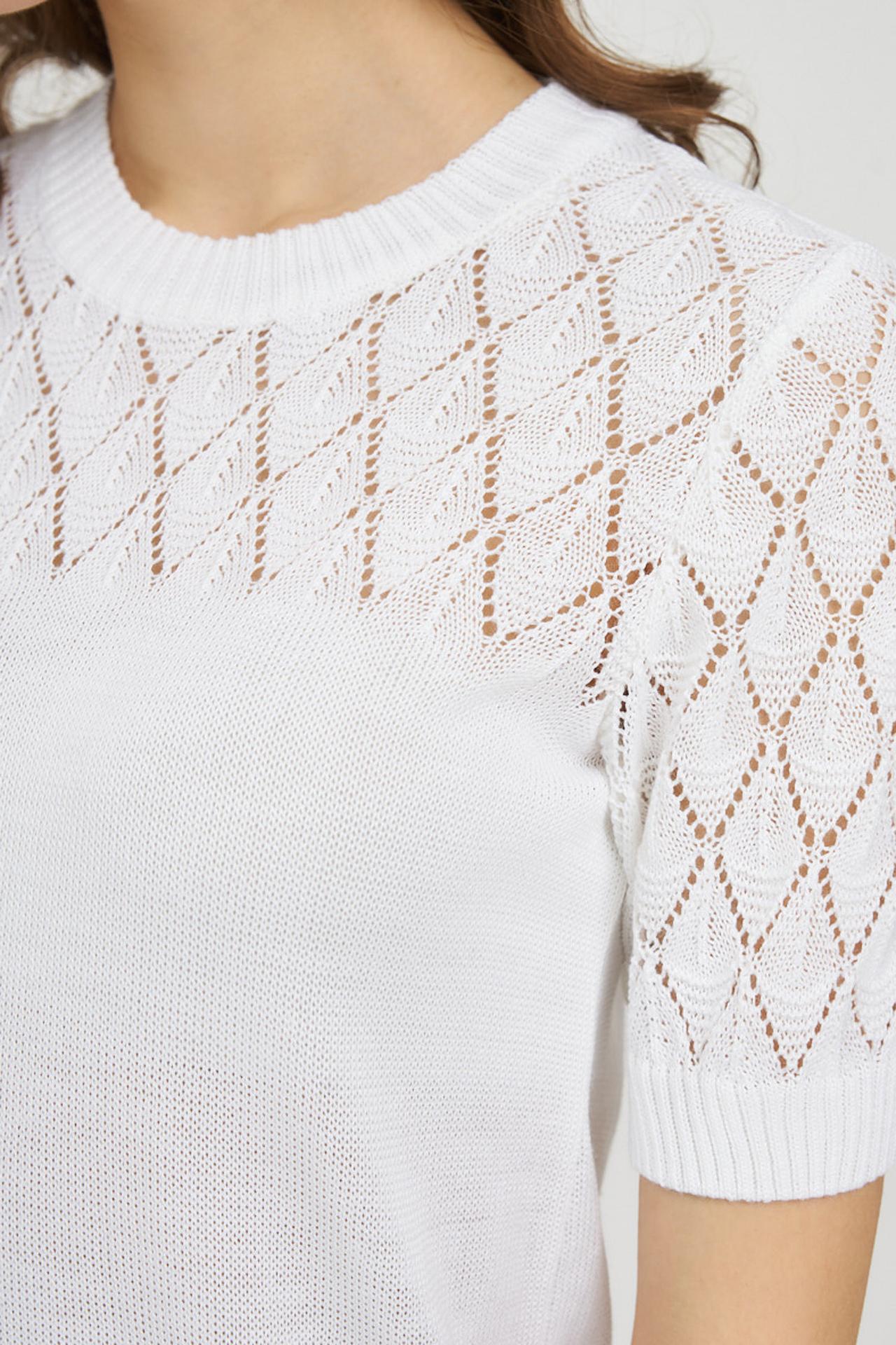 Белый джемпер VAY – это сочетание комфорта и изысканного стиля. Благодаря мягкому смесовому материалу (50% вискоза, 20% хлопок, 30% пан), этот джемпер приятен к телу и идеально подходит для создания нежных и женственных образов. Ажурный узор на плечах и рукавах придает ему особую изюминку.