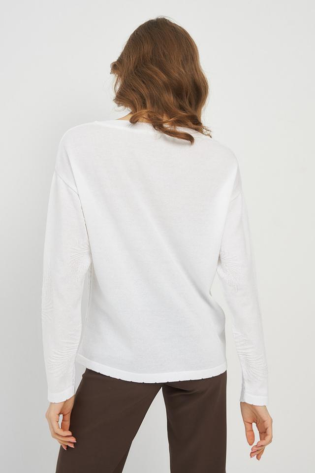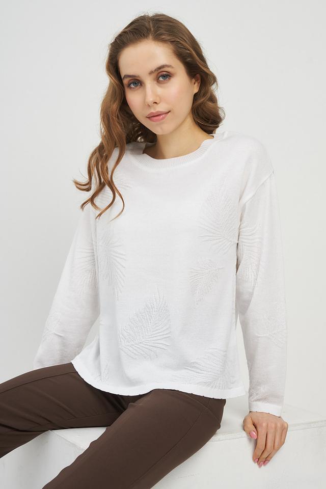 Белый джемпер от VAY с оригинальным принтом в виде листьев станет отличным дополнением к вашему гардеробу. Изготовлен из мягкого и приятного к телу сочетания хлопка и пан. Состав: хлопок 50%, пан 50%
