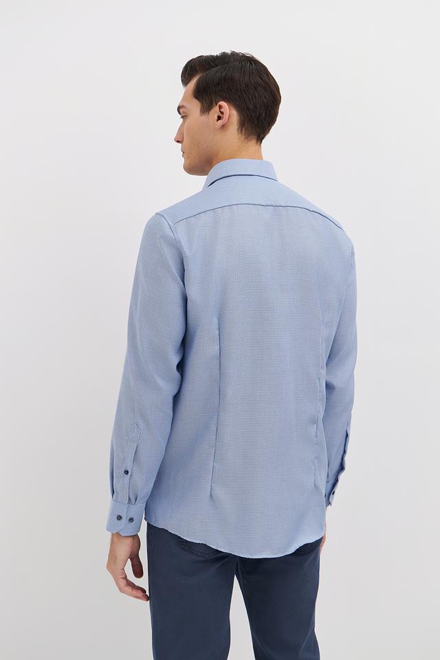 Мужская рубашка Venti голубого цвета с мелким геометрическим рисунком. Изготовлена из 100% хлопка, обеспечивающего комфорт и воздухопроницаемость. Состав: хлопок 100%