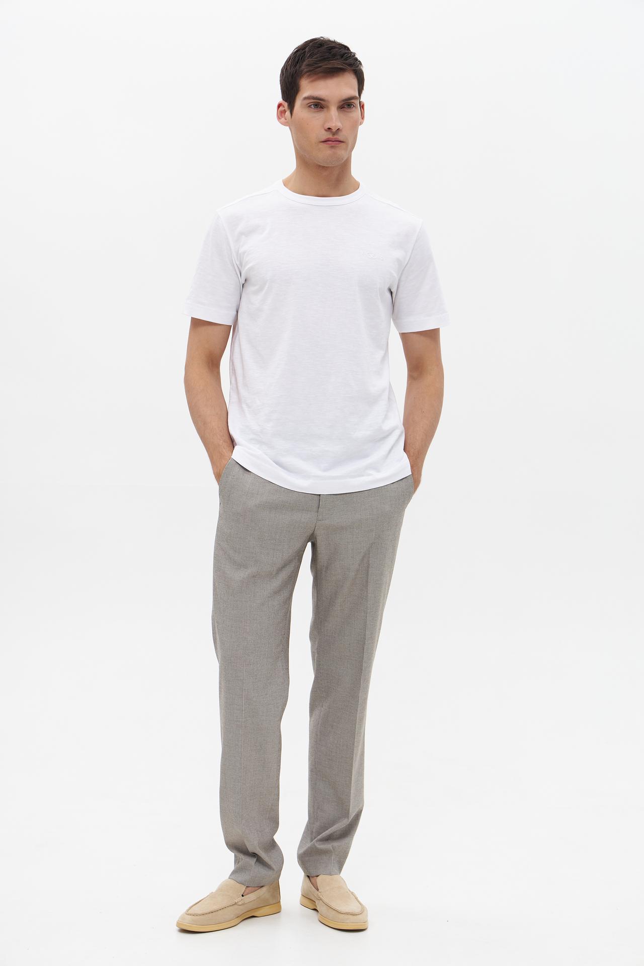- Универсальность: Серый цвет делает эти брюки универсальным элементом гардероба, легко сочетаемым с рубашками, поло, джемперами и пиджаками. Они станут незаменимой вещью как для офиса, так и для особых случаев.
