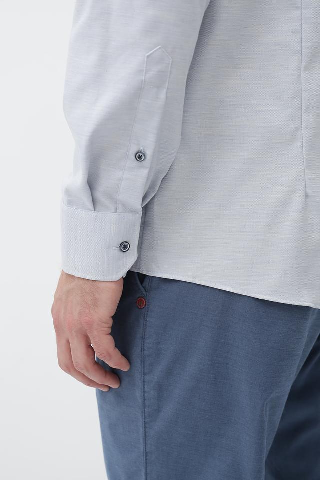 Рубашка имеет классический крой, длинные рукава и традиционный воротник. Светло-голубой цвет придает ей свежий и современный вид, позволяя легко сочетать ее с различными элементами гардероба.