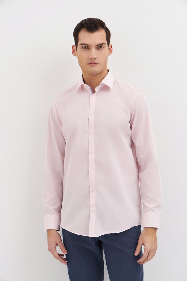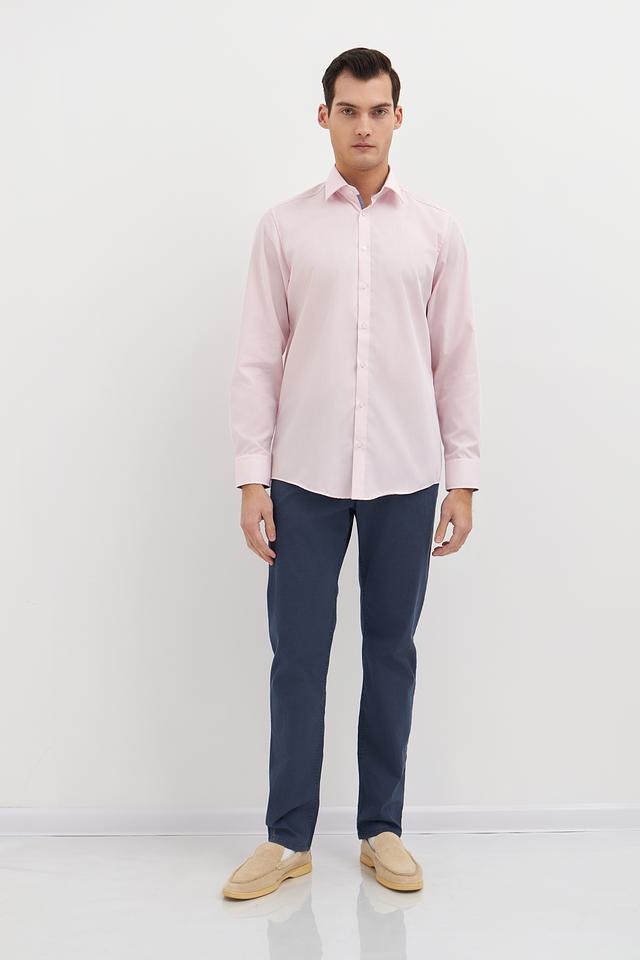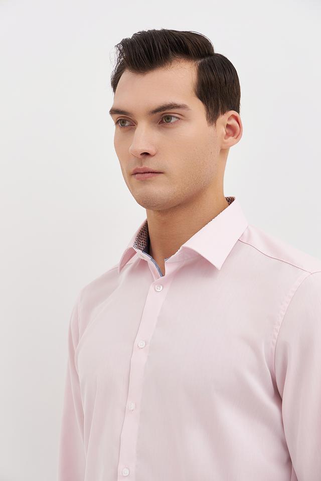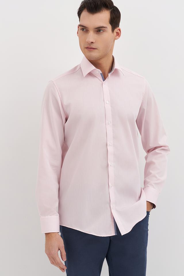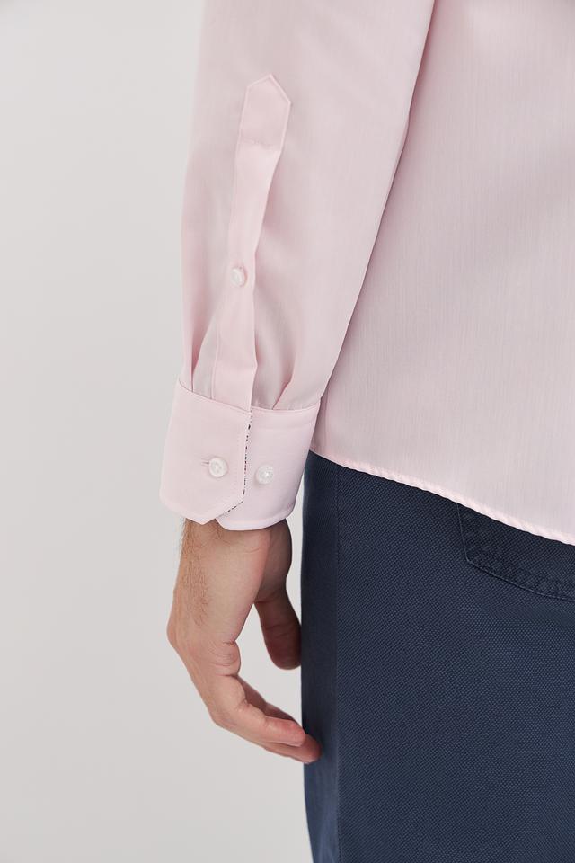 Нежный розовый цвет придает рубашке свежий и современный вид. Она идеально сочетается с брюками и джинсами различных оттенков. Рубашка имеет стандартный воротник и застежку на пуговицы.
